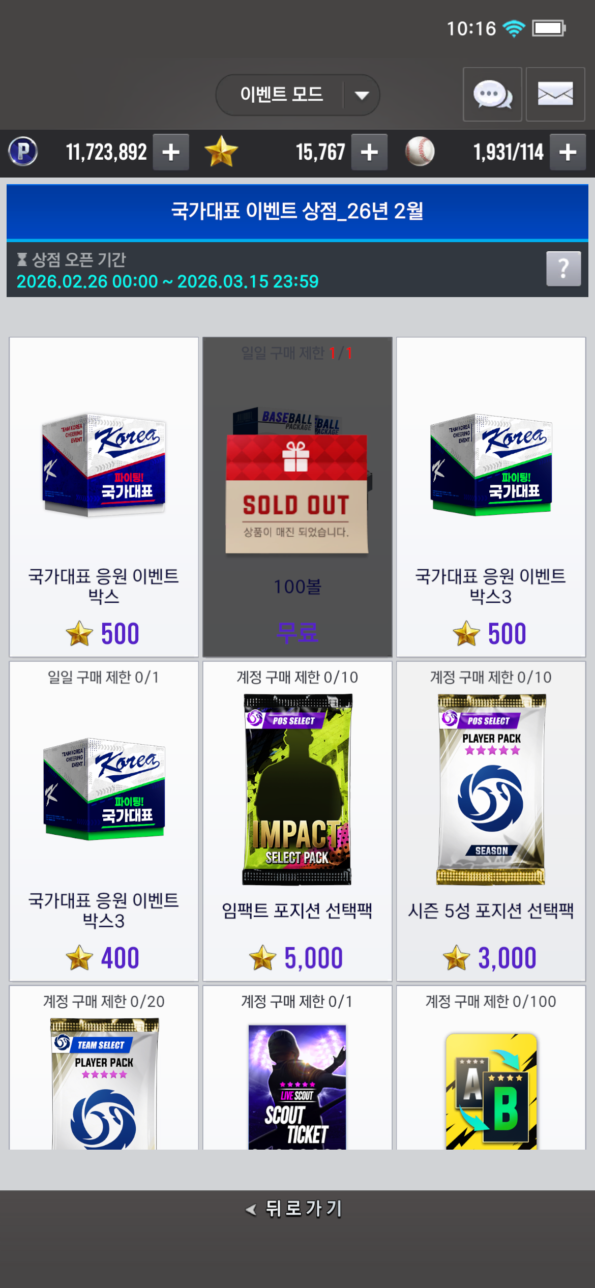15700스타 임펙트 스카우트해서 선택팩 구하기