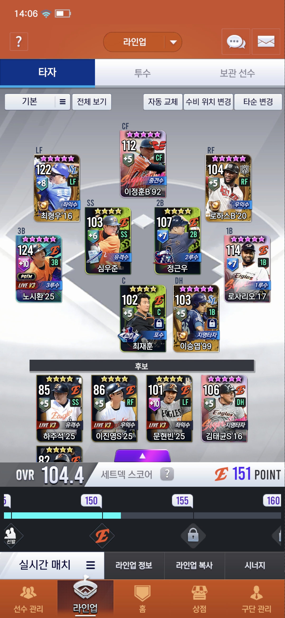 한화덱 하는데 지타에 시그 16김태균 쓰고 1루에 시그 17로사리오 쓰고 있는데 99이승엽이 생겨서 어떻게 바꿔야하나요