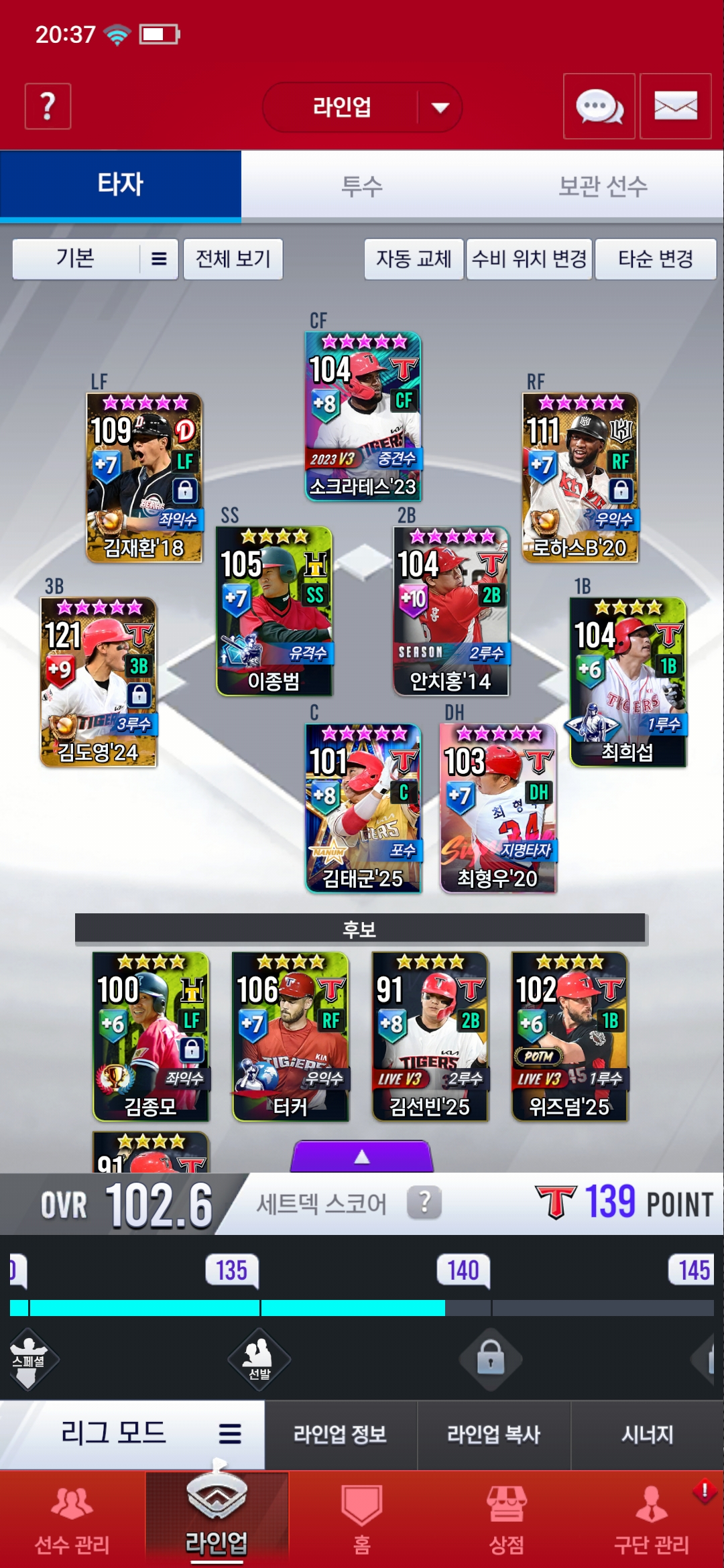 베테랑 이용규,호타준족 홍현우,철완 네일,파이어볼러 장현식,파이어 볼러 정해영,fa엄상백중 누구 골라야 할까요?