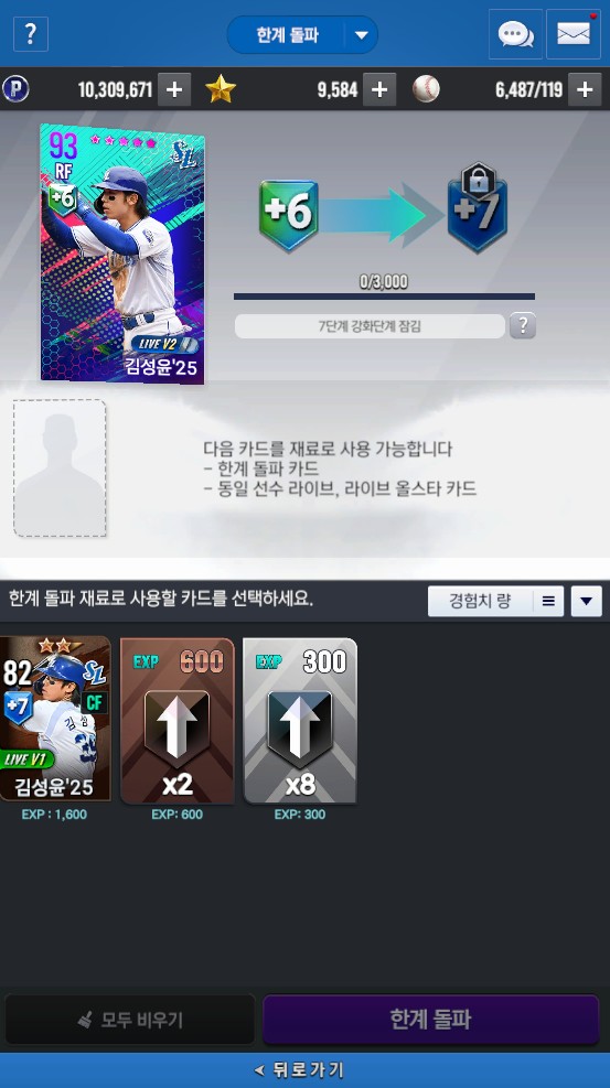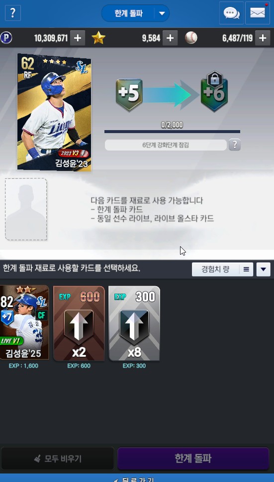 5성 김성윤 카드를 한계돌파 하고싶은데 왜 아래 카드로는 한계돌파가 안될까요 ?