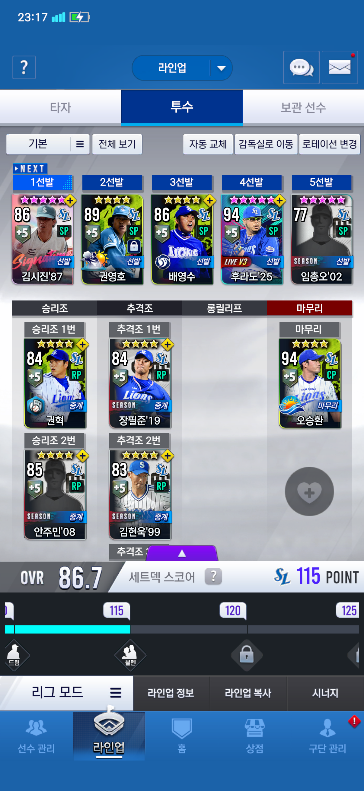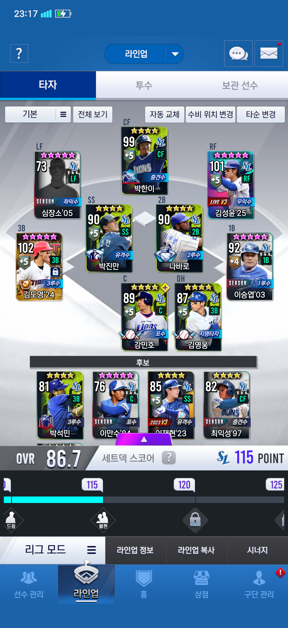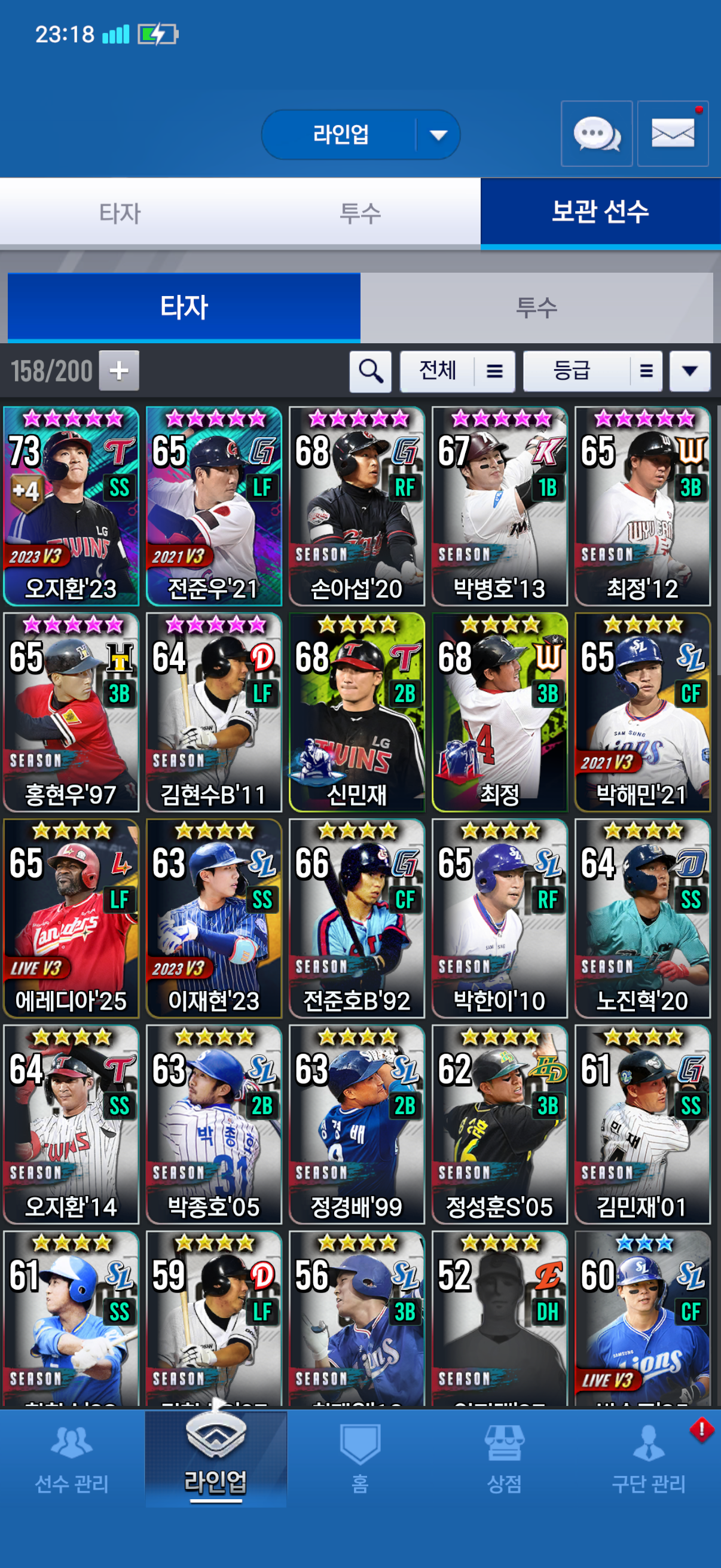 현재 투타 덱구성은 위와같고 보유선수들은 아래와같아요