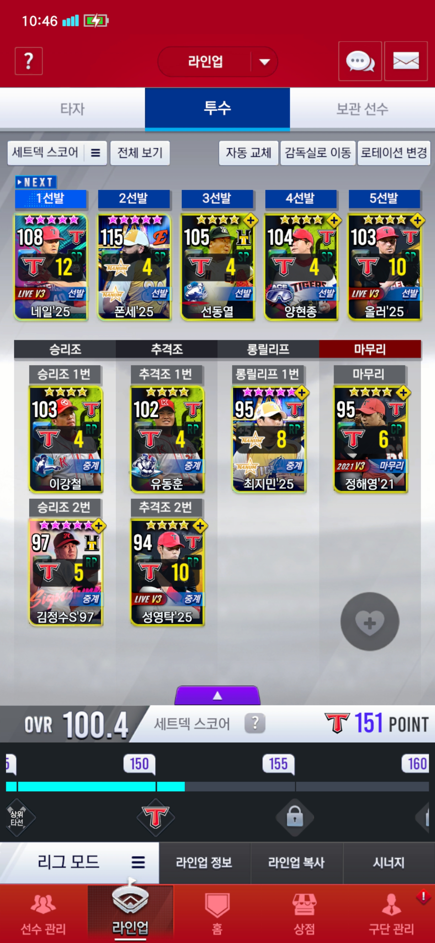 현재 유격수는 워상이종범, 마무리는 여사한기주가 떠 교체할 예정입니다.