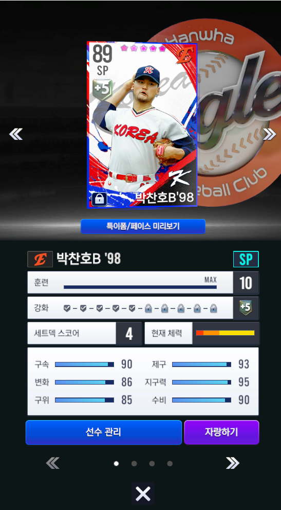 국대 구단선택팩에서 98 박찬호가 떴는데 키워도 되는 부분일까요??