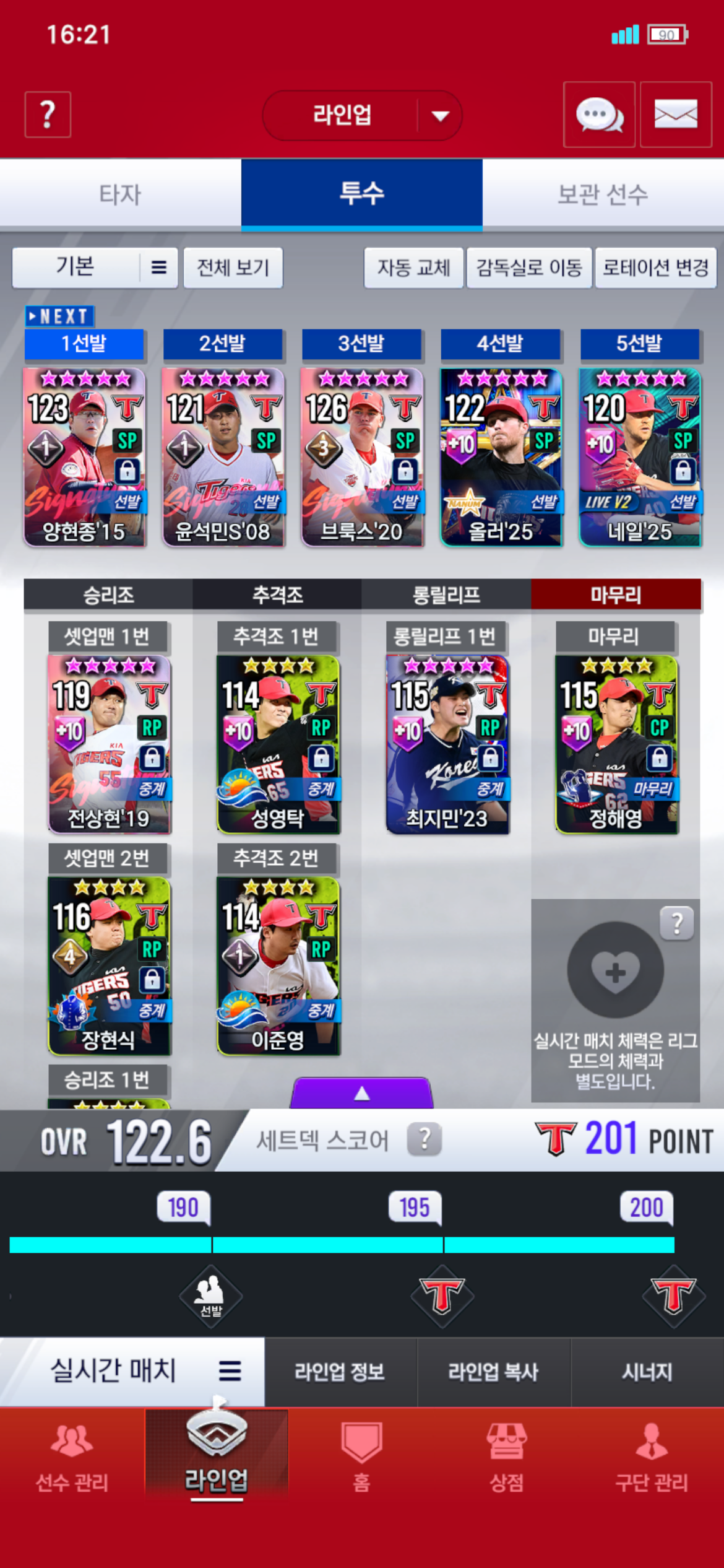 17덱(메인) / 현역덱(서브)를 사용중인데, 17 골글 최형우가 안뜨고 있는 상태에 16 골글이랑 20 시그가 떠버렸는데… 뭐를 임시로 사용해야할까요…?