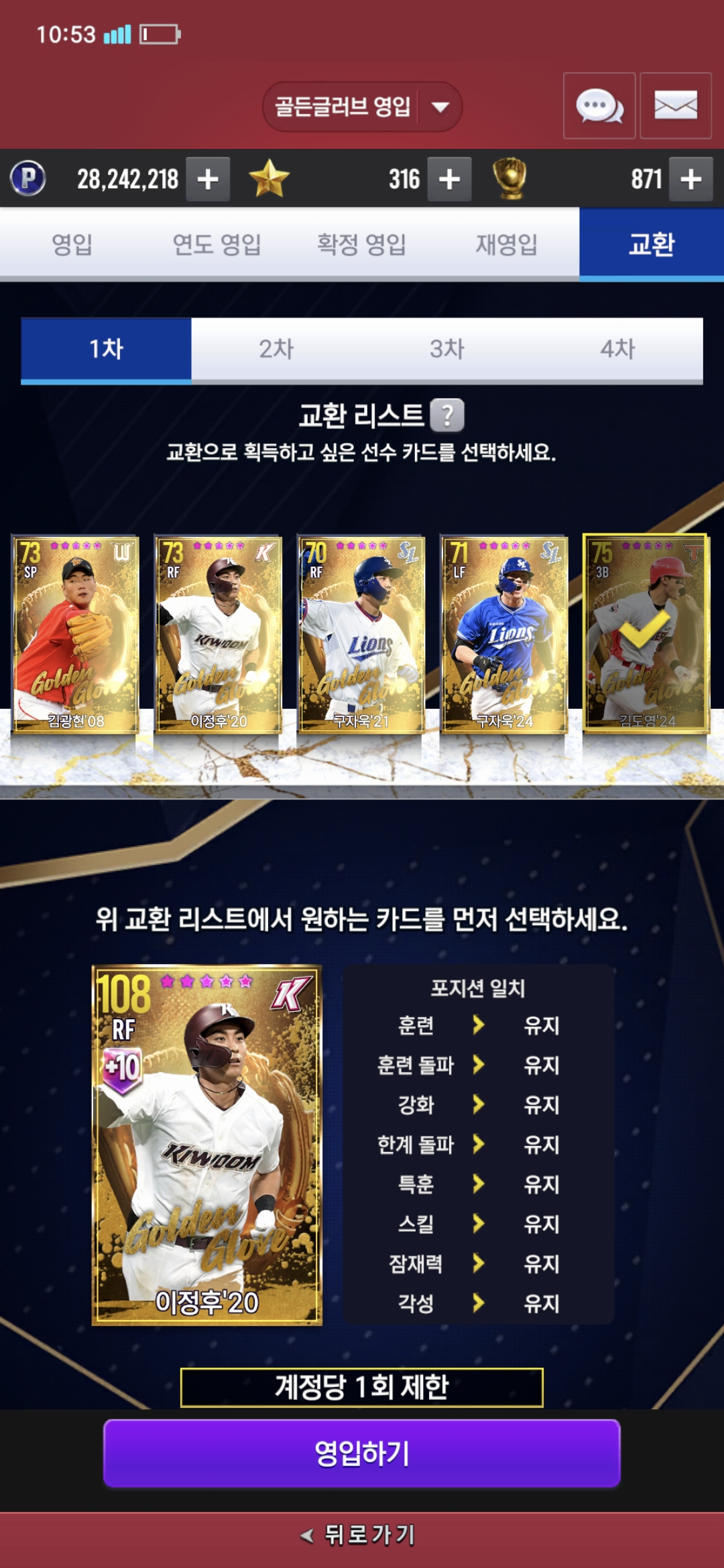질문 & 답변 형님들 로하스떳는데 번트하면스겜좀 2026-03-10 10:55 143 1 공유 공유 URL 복사 페이스북 왓츠앱 카카오톡 라인 레딧 닫기 공유 포지가 안맞아서 교환하면 강화같은거 김도형한테 그대로 가나요? 0 0 댓글 1