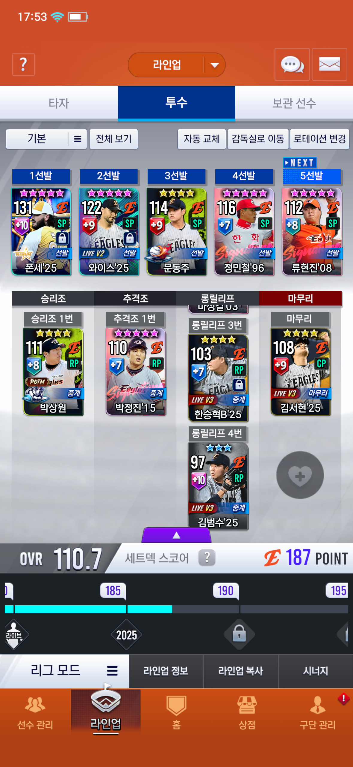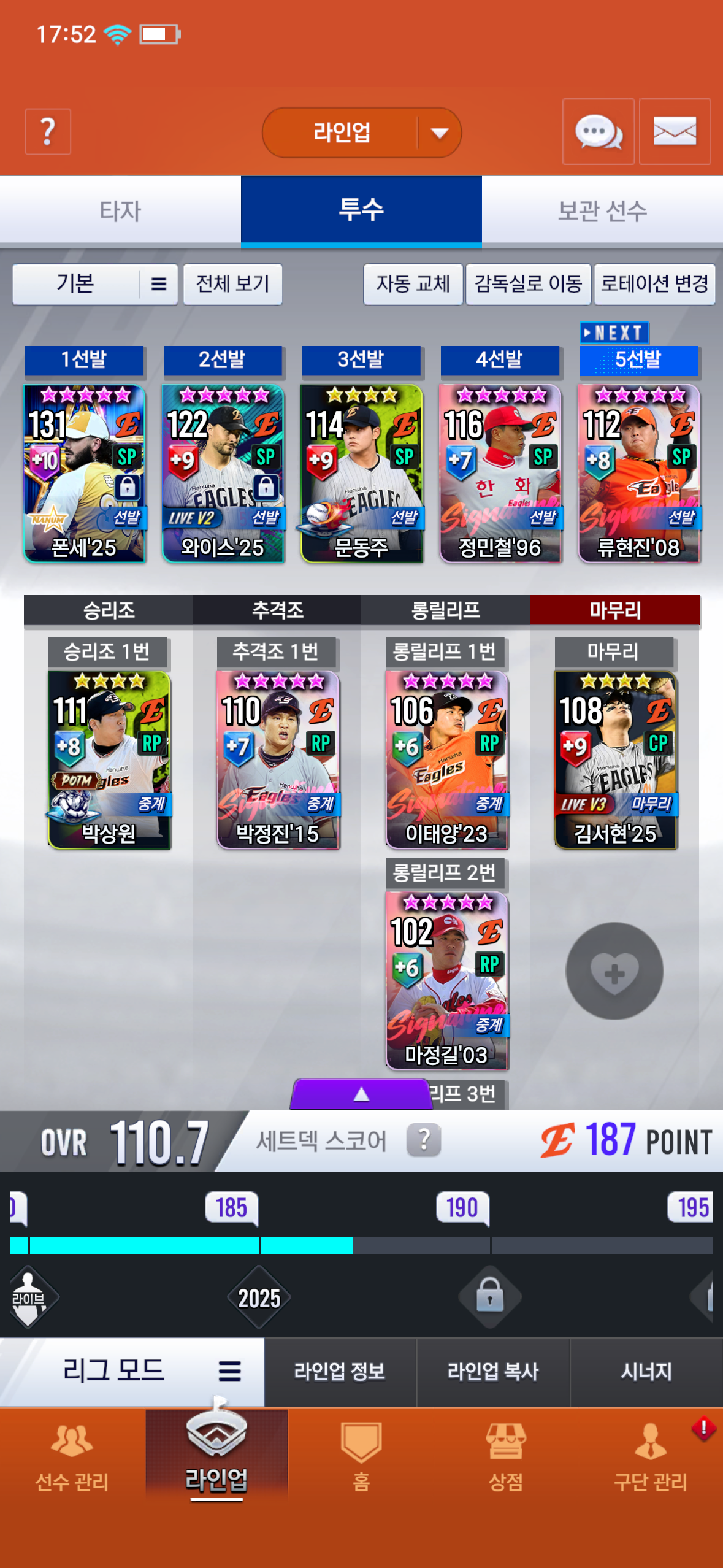 무과금이고 그냥 뉴비 시절부터 무지성으로 팀을 계속 맞춰오다보니까 약간 개판처럼 된거같은데 어떻게 해야할까요? 좌익은 16 골글 최형우,유격은 14 골글 강정호로 바꾸고 지금 키플 리베라토랑 베테랑 최재훈이 있어서 중견,포수는 얘네로 바꾸려고 하고있고 3루는 그냥 김도영 그대로 쓰고 지타는 현재 03 골글 이승엽있는데 얘를 쓸지 아님 김태균 시그뜨면 김태균을 써야할지 선발진은 저대로 키우고려하고있고 불펜은 시그 정우주 영입해서 데려오고 마무리는 가사 구대성이나 백전노장 구대성 뜨면 바꿔주려하는데 그렇게 하면될까요?