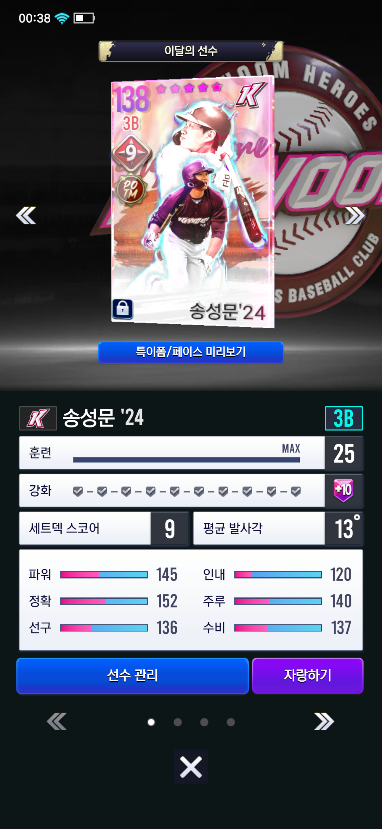송성문 발사각이 13도인데 핵타선 있으면 16도 아닌가요?
