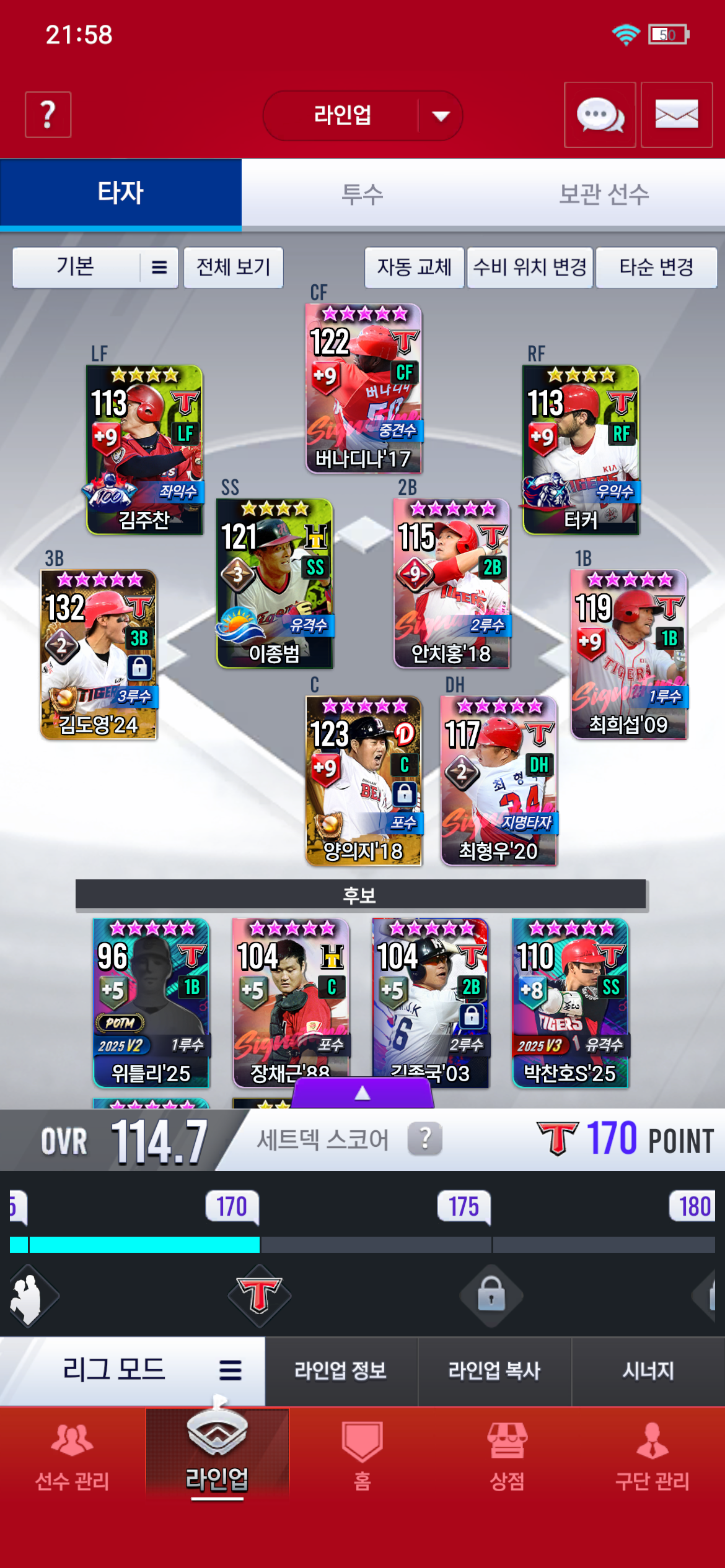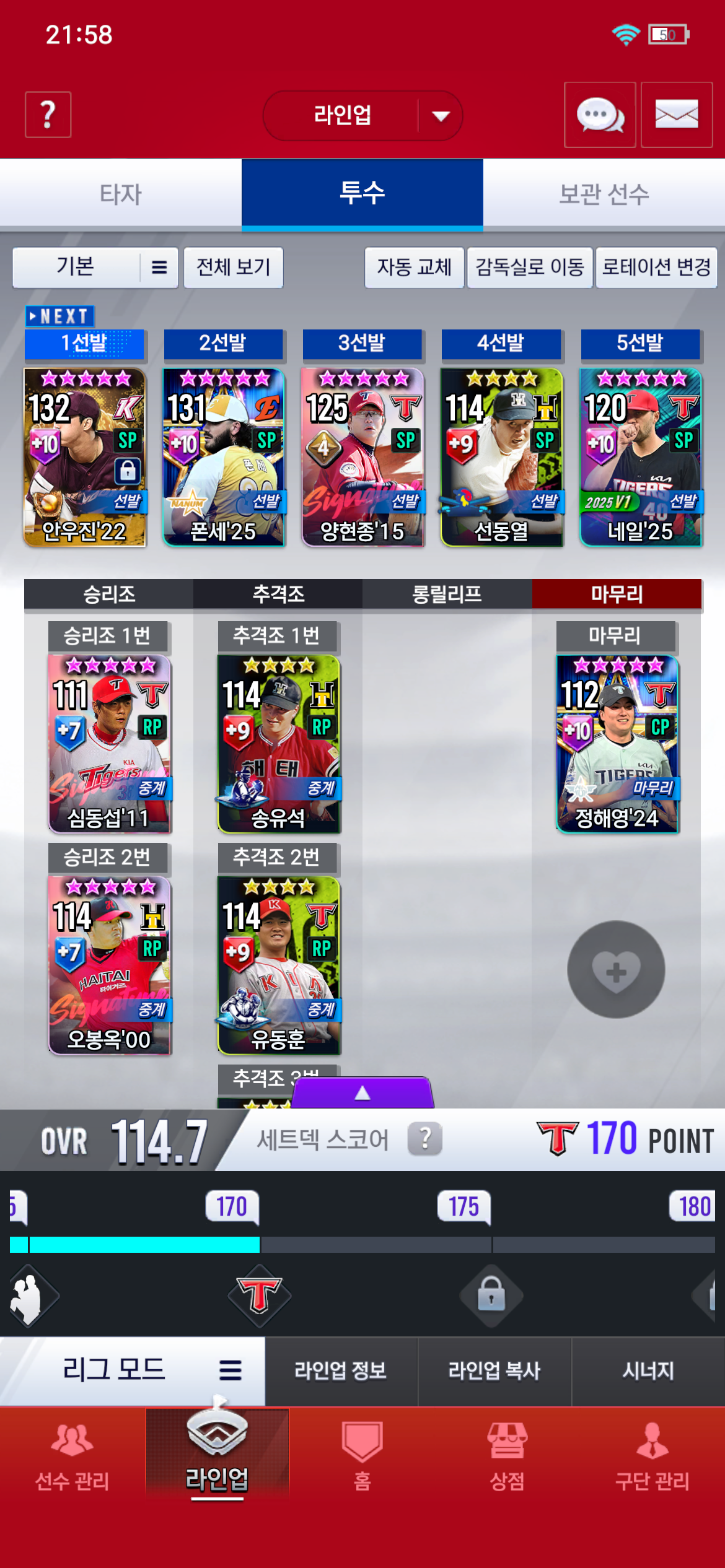 그리고 마무리랑 중계 (올스타성영탁) 좌익수 우익수 는 뭘로 대체를 해야할지 알려주시면 감사하겠습니다