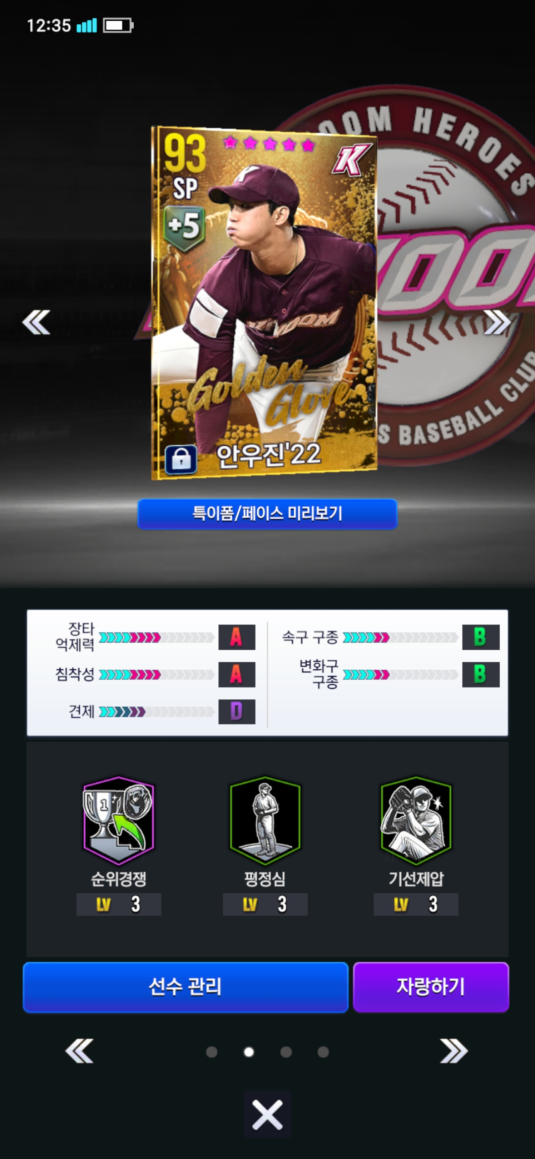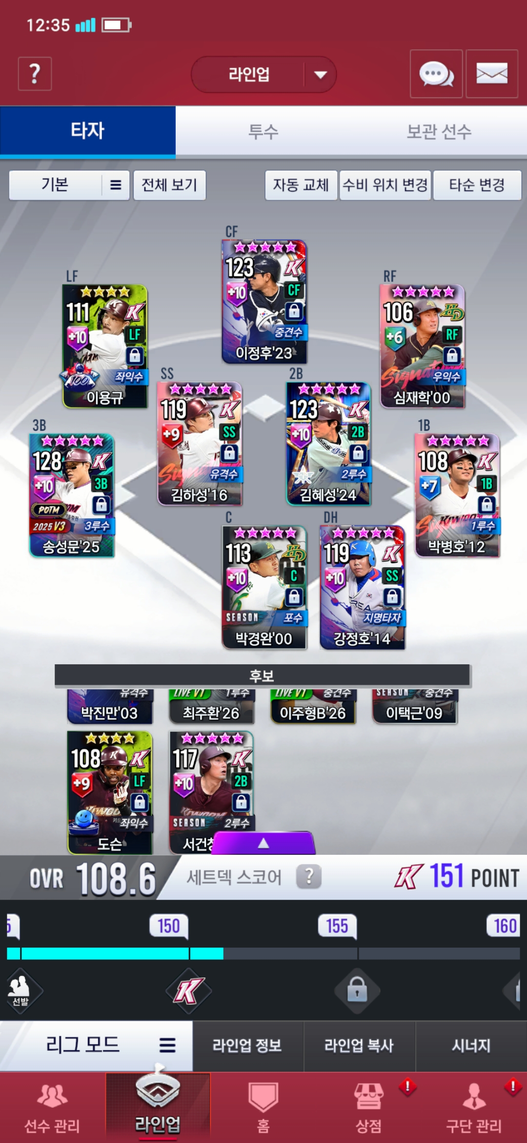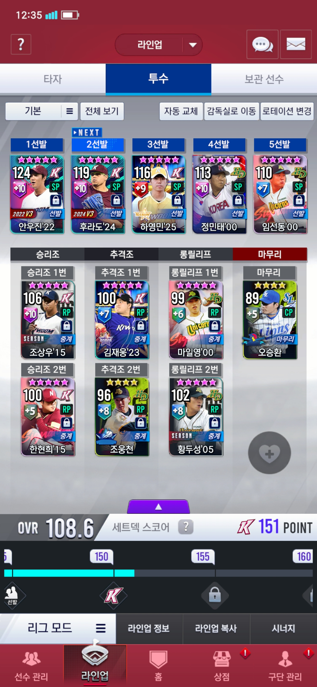 현재 키움덱 운영중이고 사진에 보이시는것처럼 타자와 투수로 리그모드 돌리고있습니다.