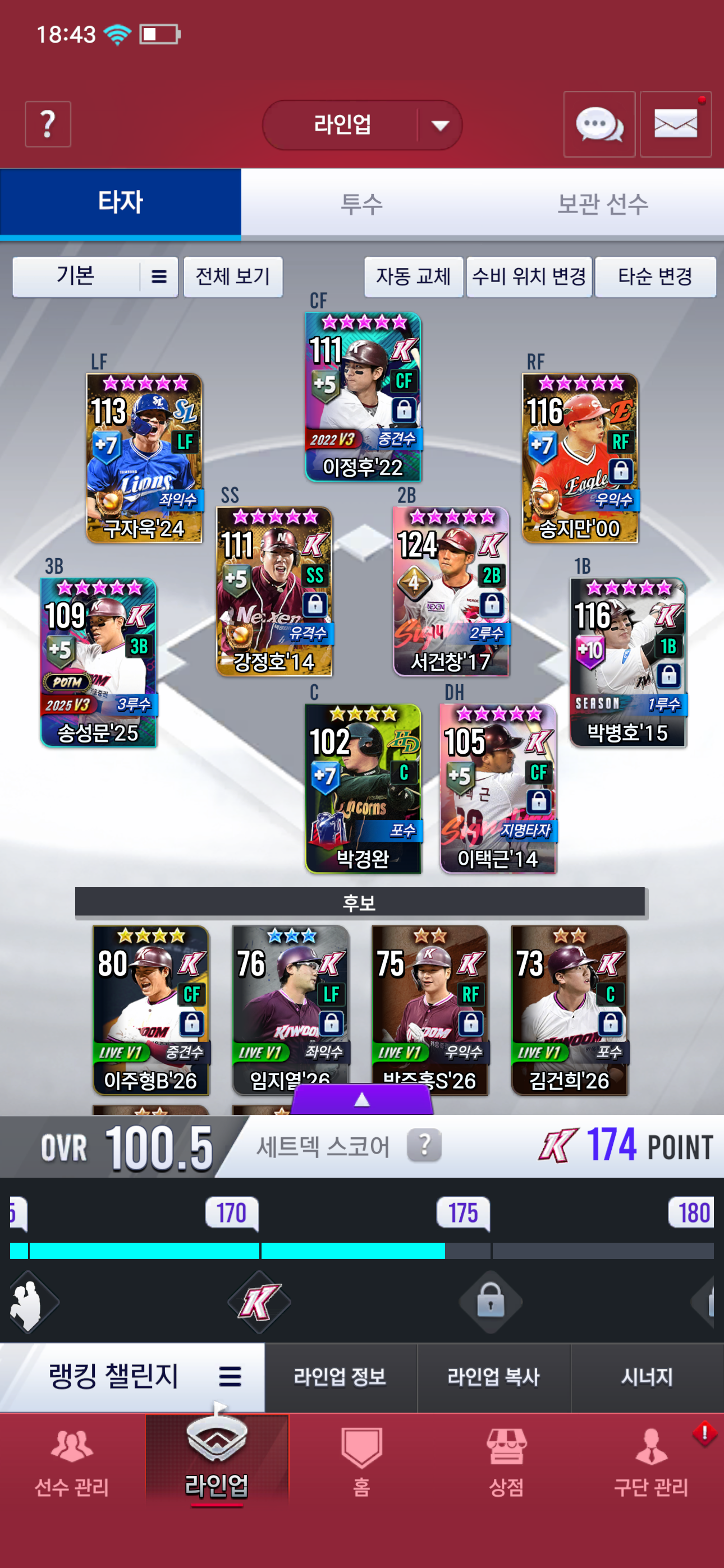구자욱은 각성 쌓다가 2차 12강정호로 교환하고 골정호에 계승하려 합니다.