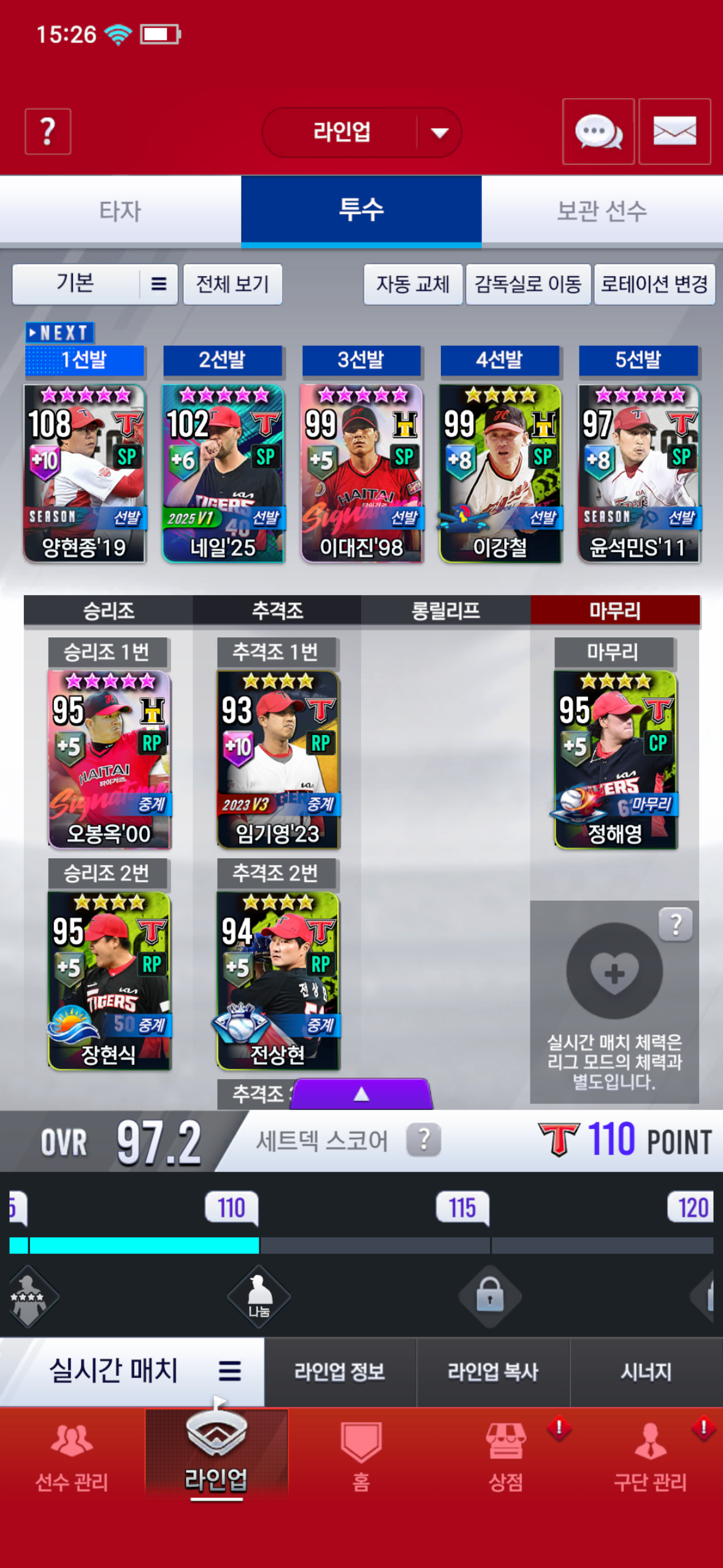 딱히 막 엄청 열심히 할 생각은 없어서 김도영은 그냥 라이징스타 김도영 키우고 골글 00박경완 뽑아놔서 2차 교환에서 다른 걸로 바꾸려는데 1차 2차 교환 추천좀 해줭