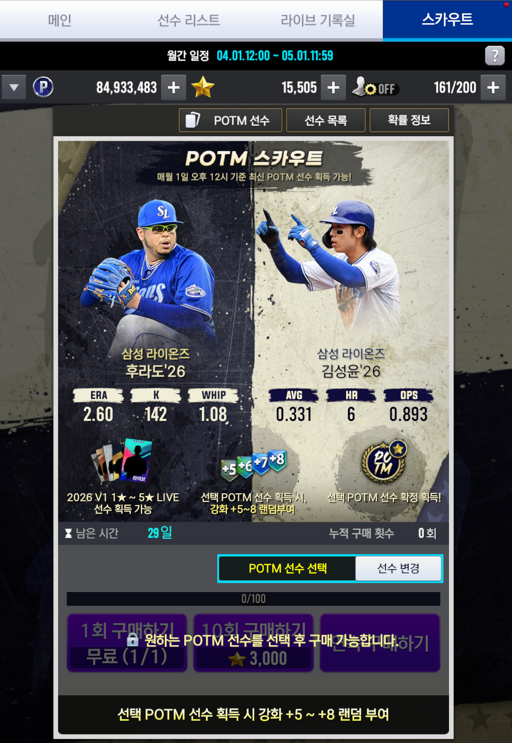 질문 & 답변 이달의선수 스카우트 하려는데 선택이 안되네요 띵홍이 2026-04-01 16:02 66 0 공유 공유 URL 복사 페이스북 왓츠앱 카카오톡 라인 레딧 닫기 공유 선택 어떻게하나요 아무도 선택할 수 없는데 0 0 댓글 0
