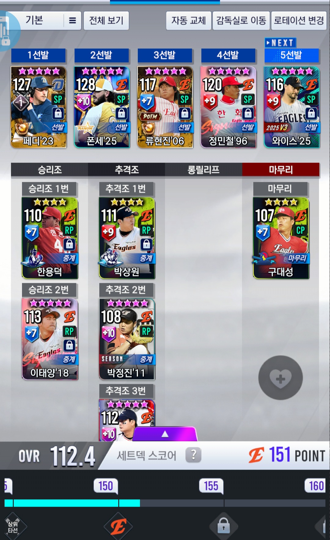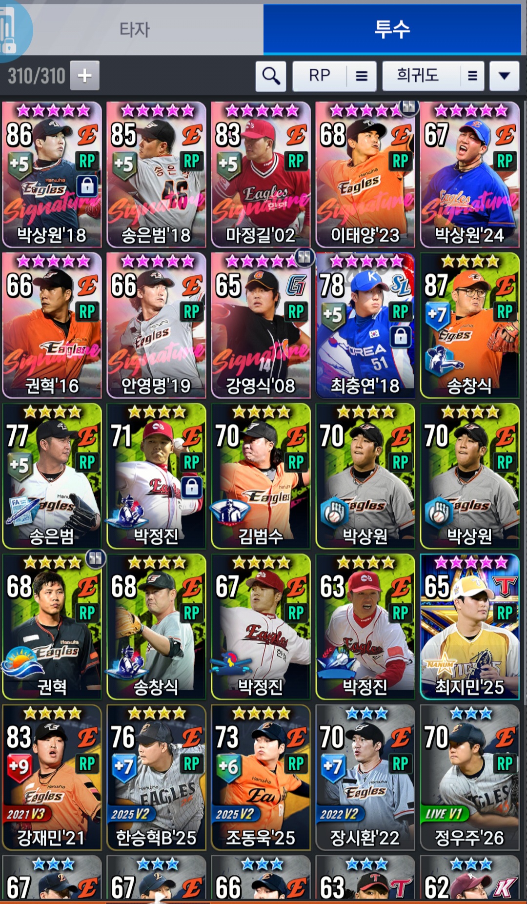 2. 박정진 시즌카드말고 다른 대체가능한게있을까요?? (시그선탣팩을 사용해서 혹은 현재 제 인벤에있는애들중에서..)