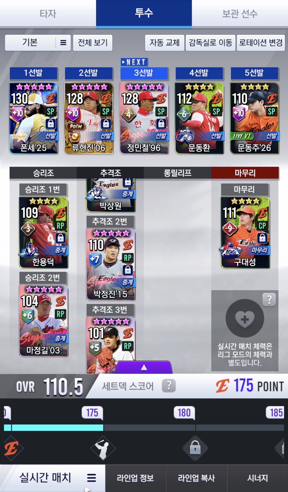 - 1. 셋포가 많이 떨어저서 일단 5선발은 급한대로 쓰는중인데요