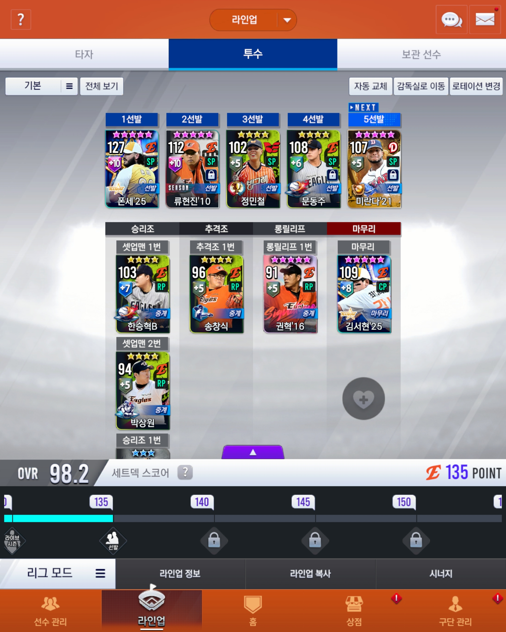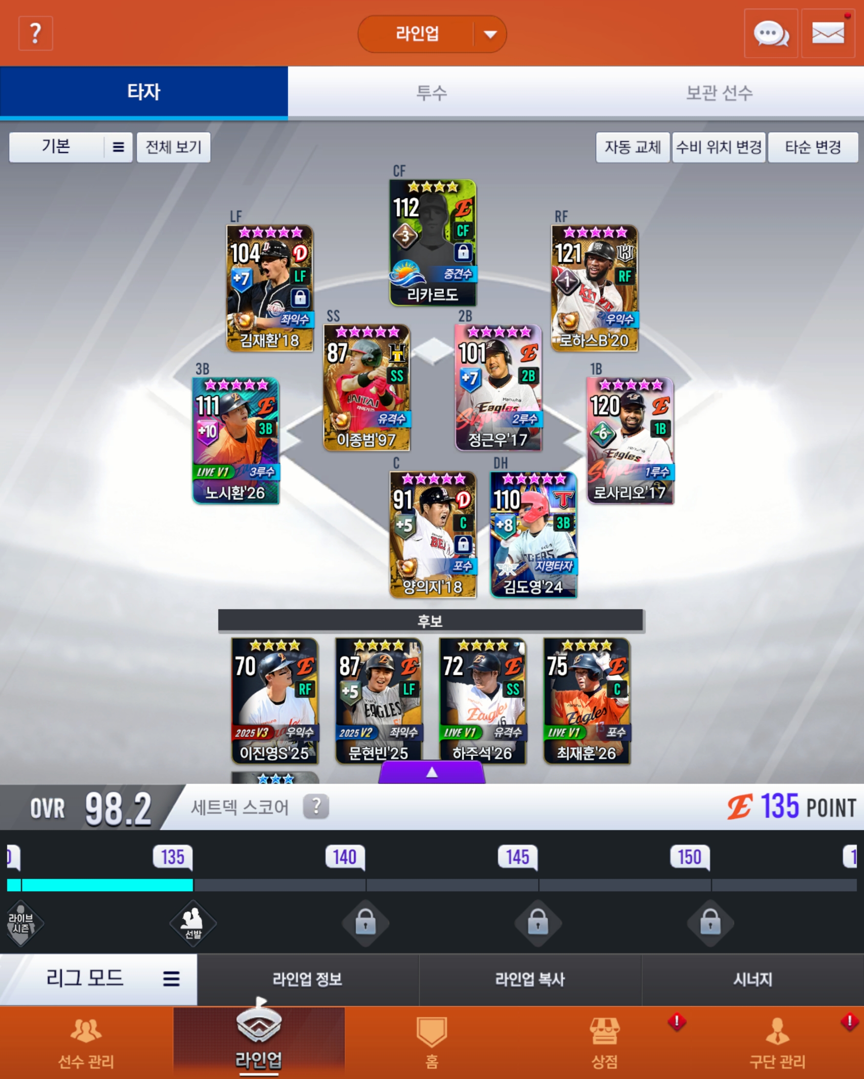 현질은 평생이랑 전지훈련 2번,33000원 하나 해서 10만원 전으로 했고 실대 전혀 안돌리고,랭대도 잘 안돌리는 리그모드만 하는데 97 아종범 써도 될까요? 혹시 성능으로 장종훈한테 떠이나요?