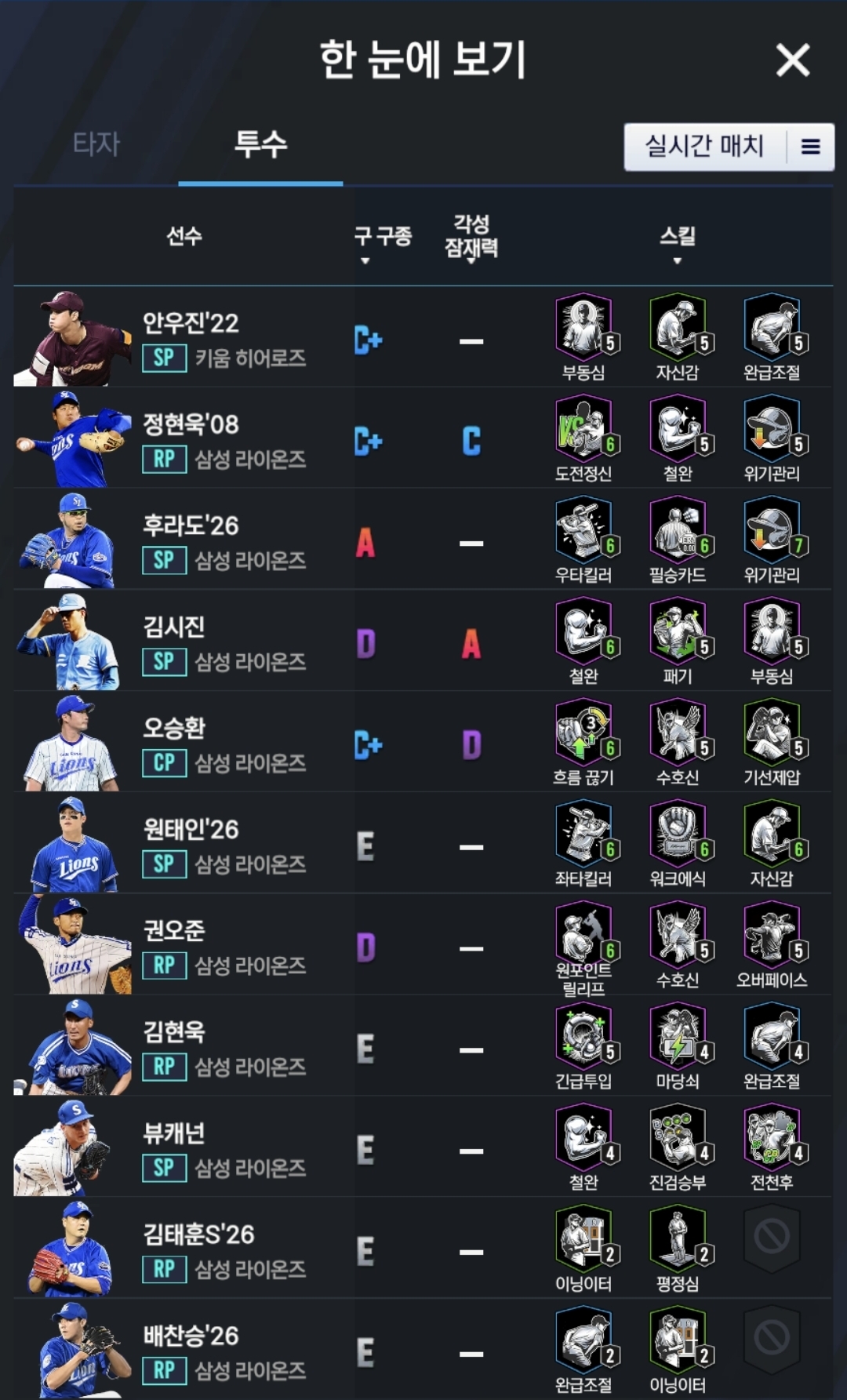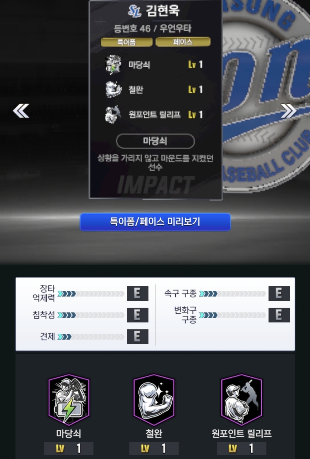 마당쇠 김현욱 스킬이 마당쇠, 철완, 원포인트 릴리프입니다.
