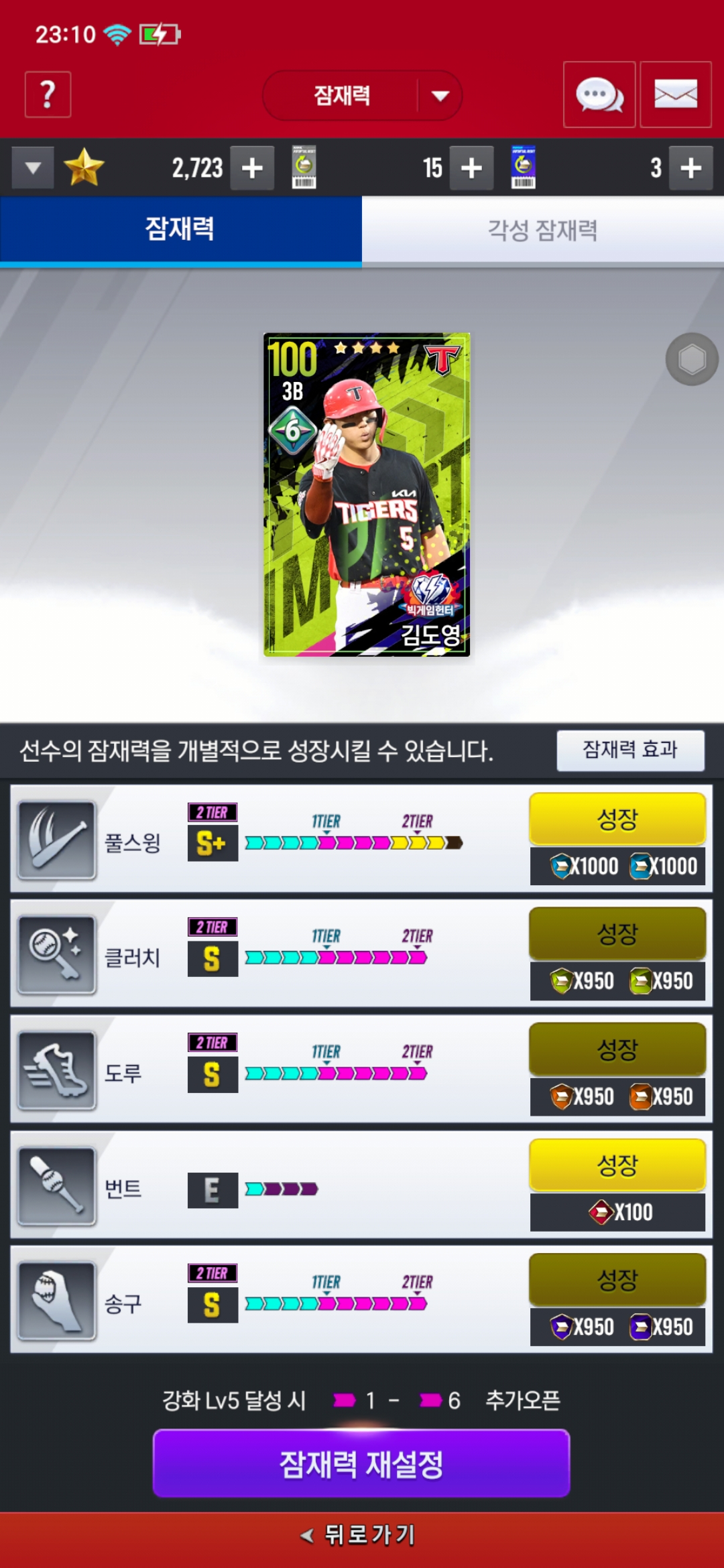 김도영 잠재력이 이렇게 떴는데 풀스윙 sr+보다 이게 낫나요? 아니면 sr+ 될때까지 계속 돌릴까요??