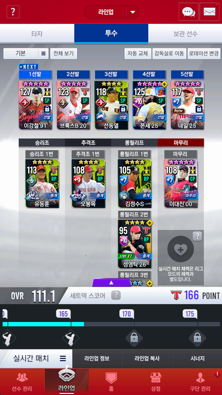 마당쇠랑 좌에 중에 고민 중인데 불펜이 너무 약해서 마당쇠를 할까 생각하고 있긴 합니다