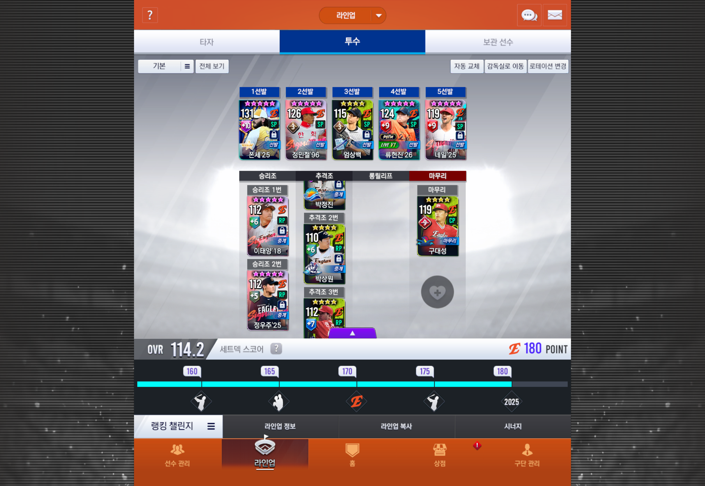 올해 fa를 네일로 이미 했어서 제작소에서 만들수있는 fa권 하나 남았는데(17박건우,17김재환,25라일리 나오면 fa시키려고 남겨둠) 네일을 지금 9강까지는 해놔서 그런데 22김광현을 fa시키고 투수를 22덱으로 가는게 나을까요 아니면 25덱으로 그대로 가는게 나을까요?