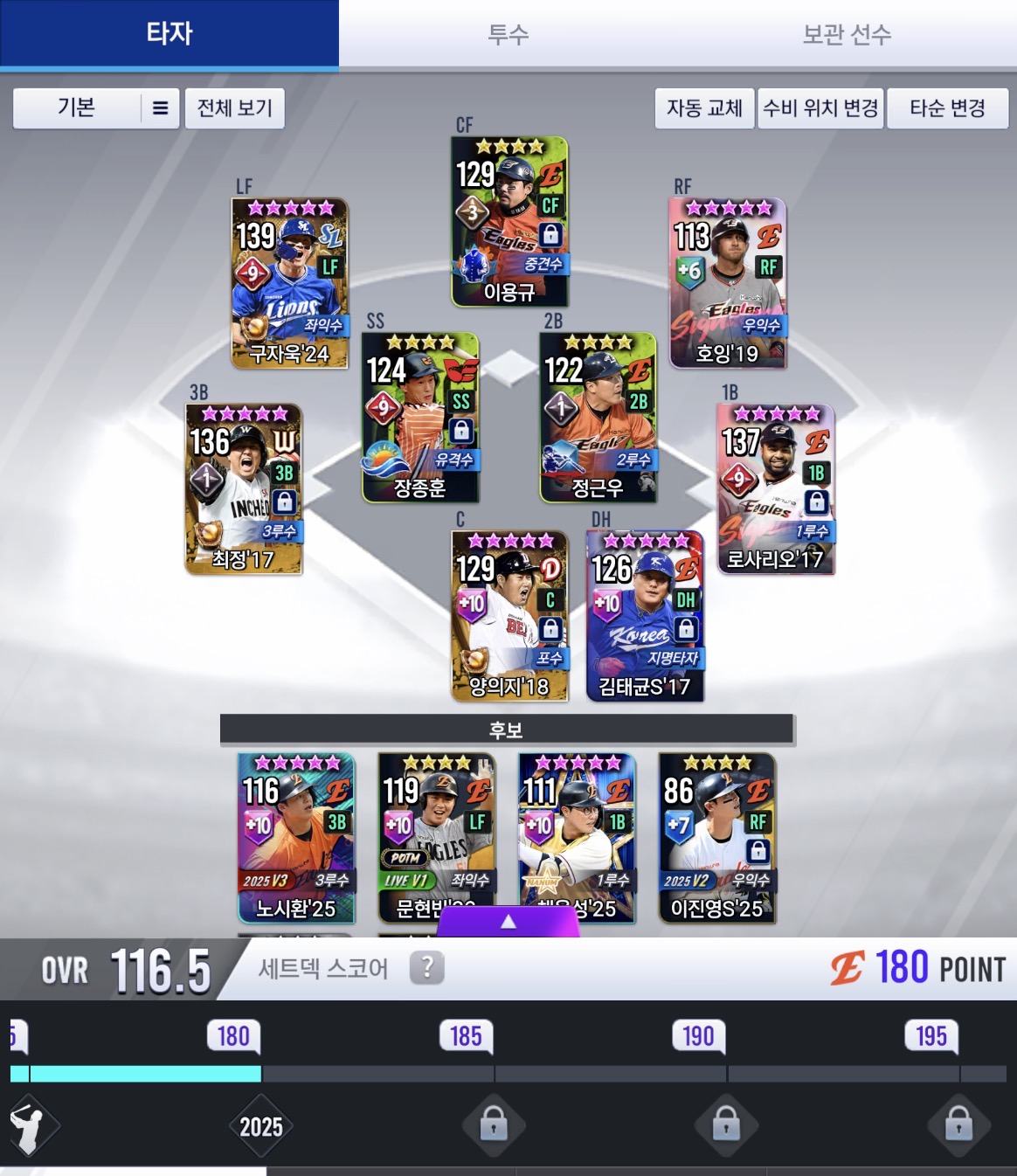 한화 무소과금 10개월정도 됬습니다. 로하스 00송지만 말고 17나성범이나 현역감성으로 18채은성 19강백호 이런건 절대 안쓰나요? 로하스가 안떠요ㅜㅜ 빅게임 호잉도 궁금합니다 왜 안쓰지 랭커형님들.. 우익수 추천해주세요!