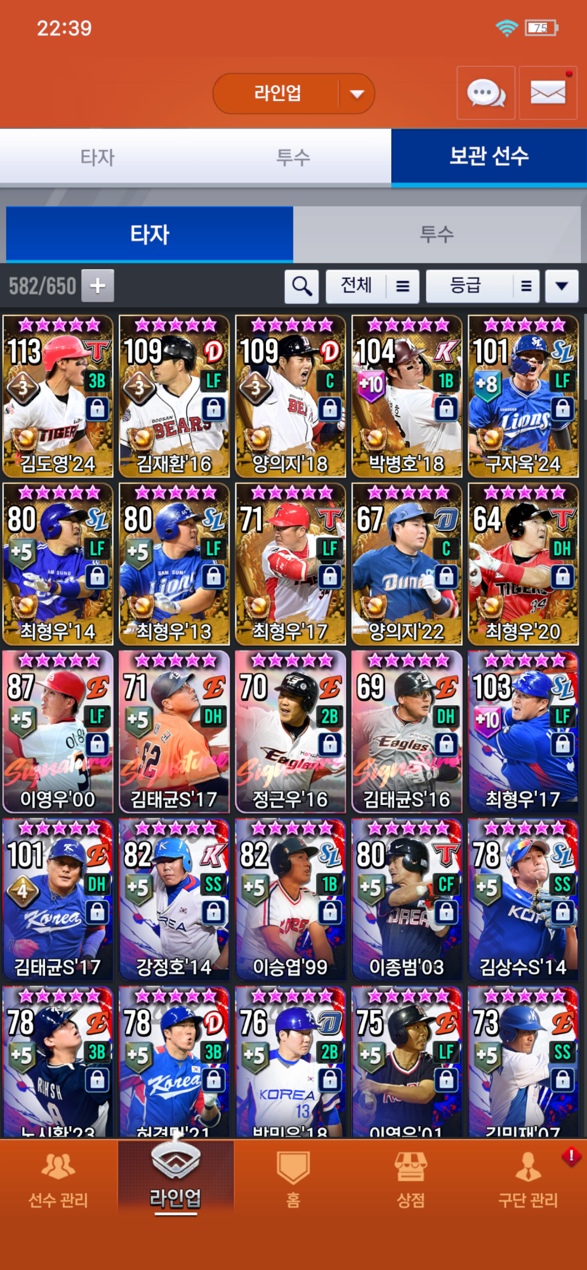 김도영을 승부치기, 타점배틀 주루툴, 홈레에서 쏠쏠하게 사용중이라 고민입니다