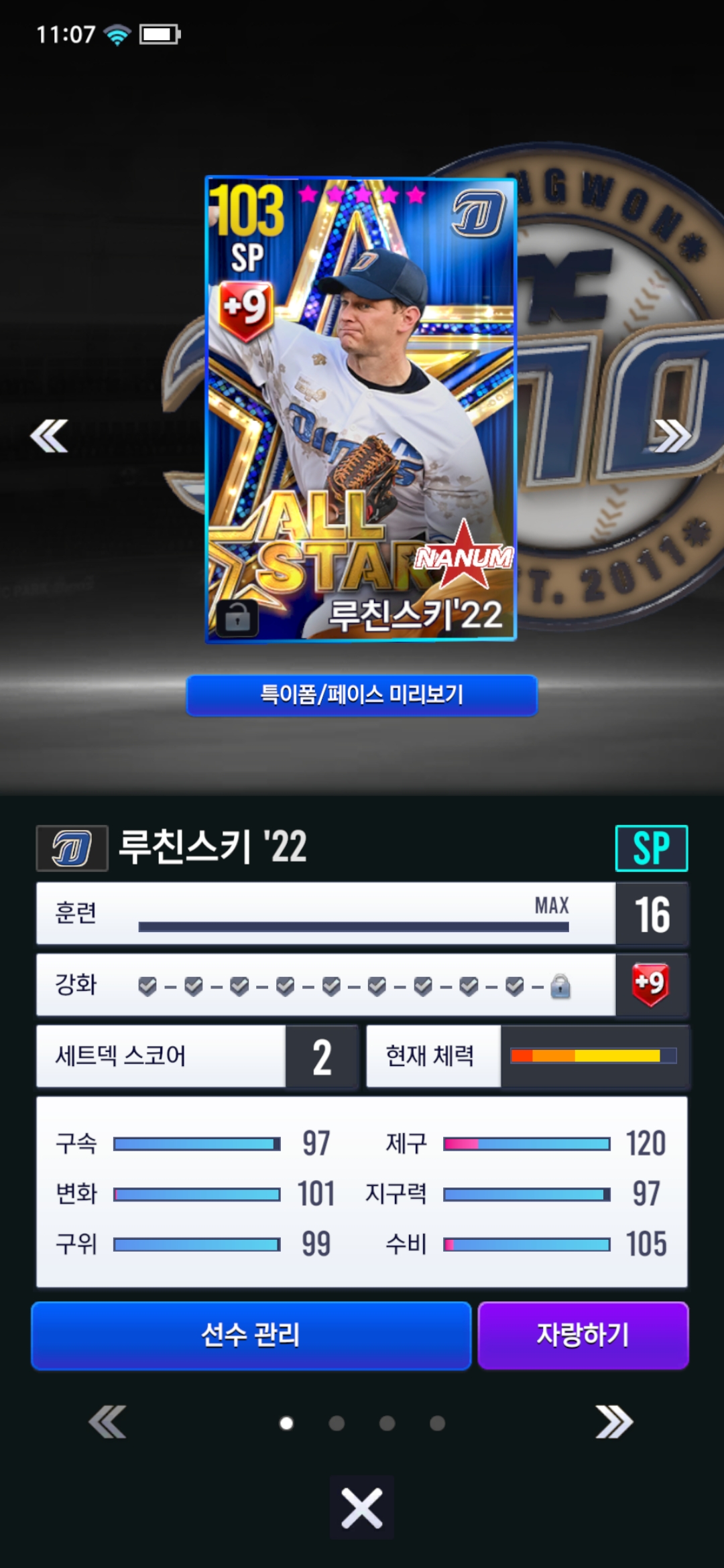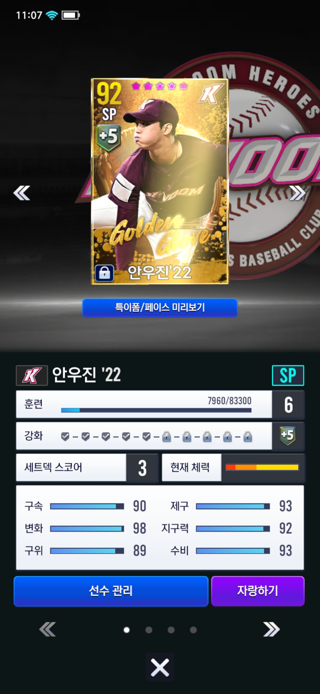 어제 새벽에 안우진 골글을 얻게 되었습니다. 막상 바꾸려고보니 현재 쓰고있던 루친스키 올스타가 더 좋아보여서 지금 바로 안우진으로 바꿔야할지 아니면 안우진 육성 후에 바꿔야 하는지 답변 부탁드립니다. 주로 하는건 실시간 대전입니다.