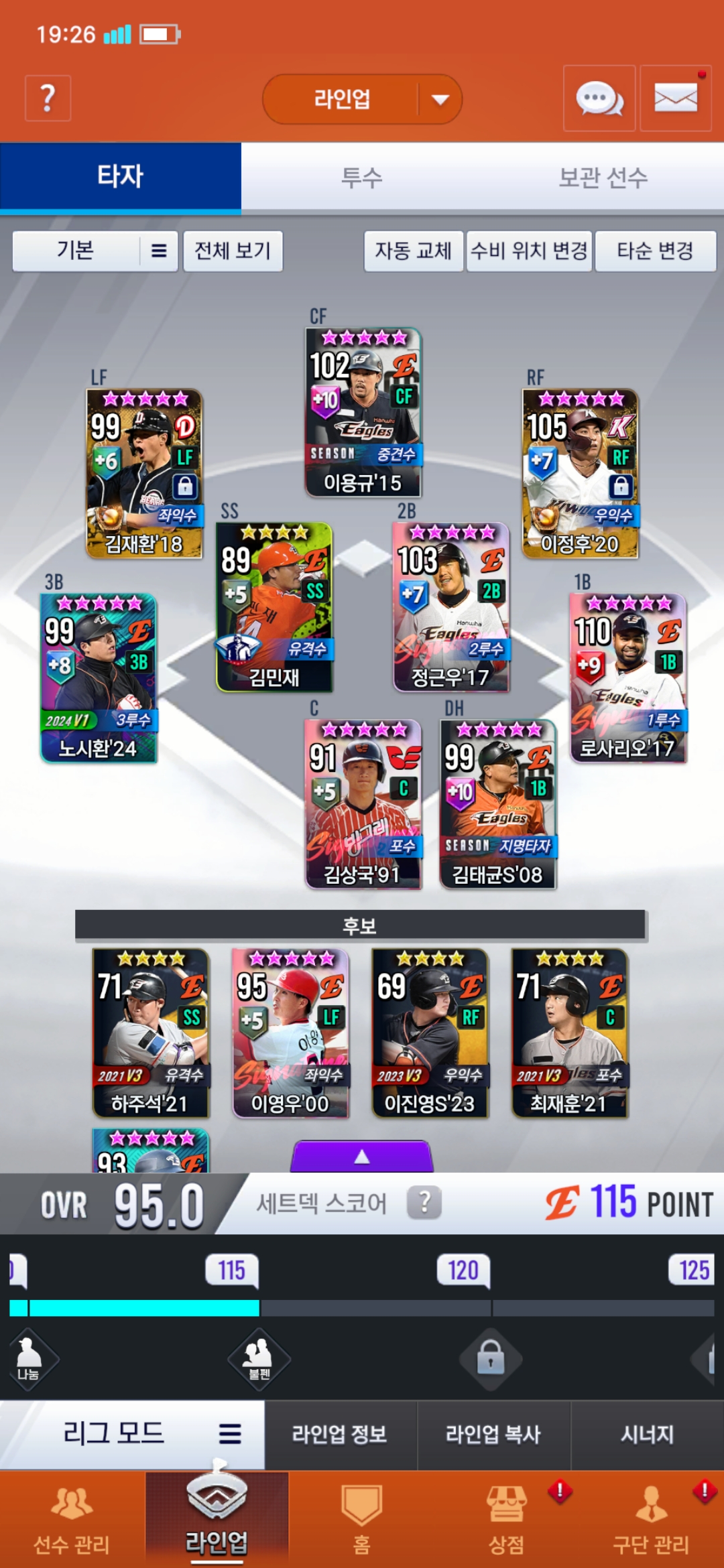 - 1. 김태균을 빼고 박병호를 쓴다.