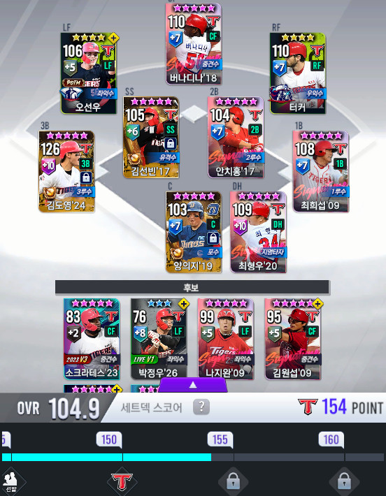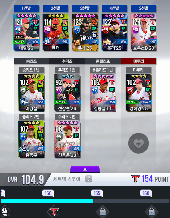 4. 마무리쪽은 임팩트선택팩으로 파이어볼러 정해영으로 바꾸는건 좋을지 궁금합니다!