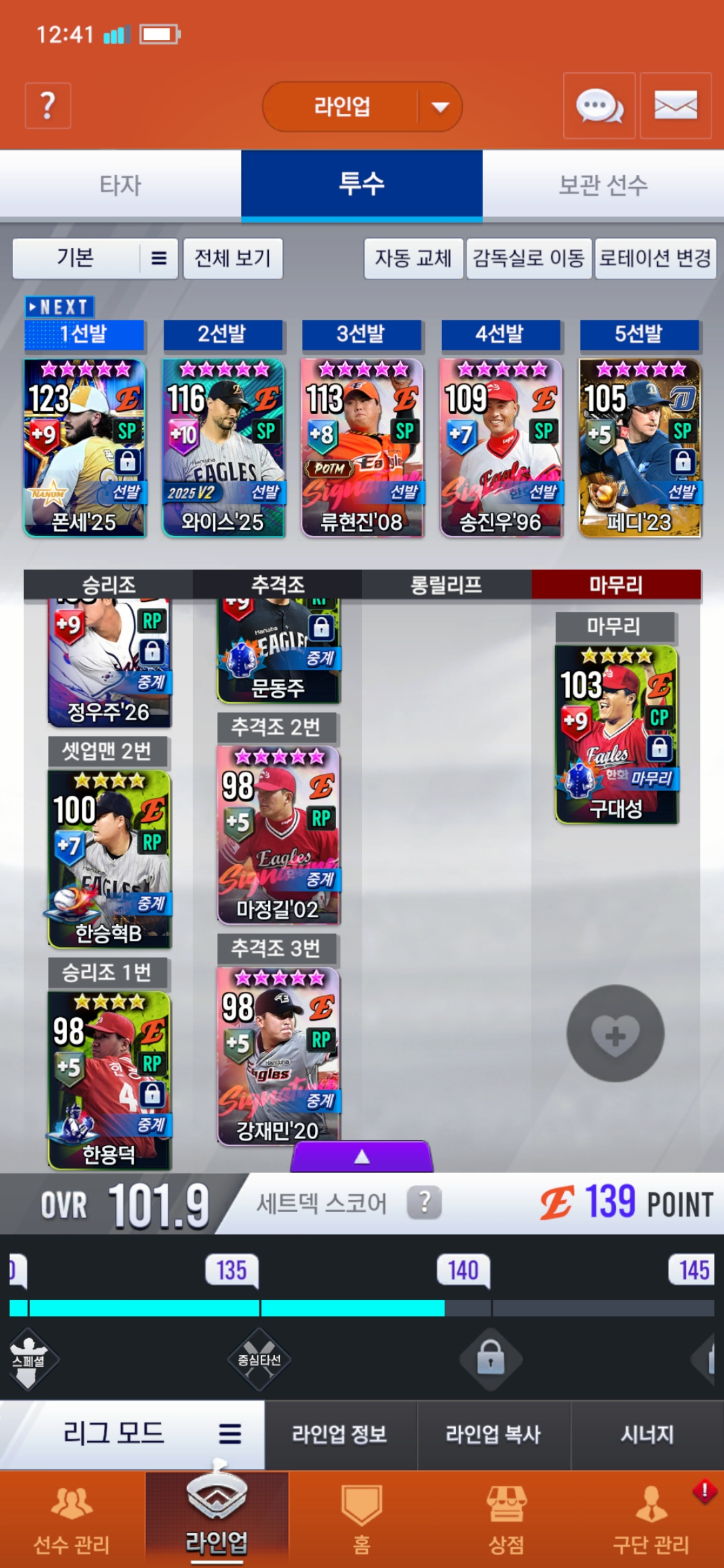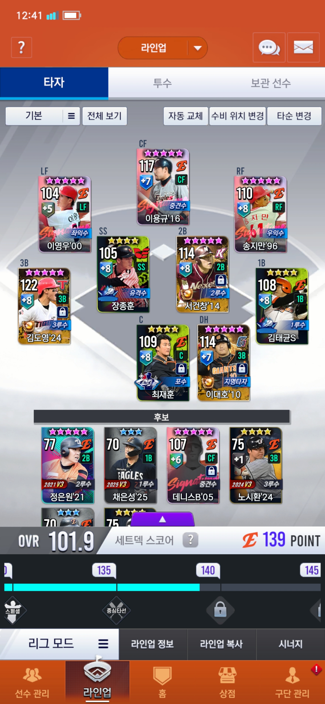 덱 많이 안좋은건 아는데 그냥 당장 보기에는 선발이랑 유격수가 급한거 같아서 저렇게 넣어놨는데 어떤가요? 남은 한자리는 좌익수가 아니라 우익수를 넣어야 할까요? 어차피 리그모드를 많이해서.. 세트덱 엄청 중요하진 않은데 그냥 랭챌이나 이런것때문에 스펙업을 좀 하고싶어서요