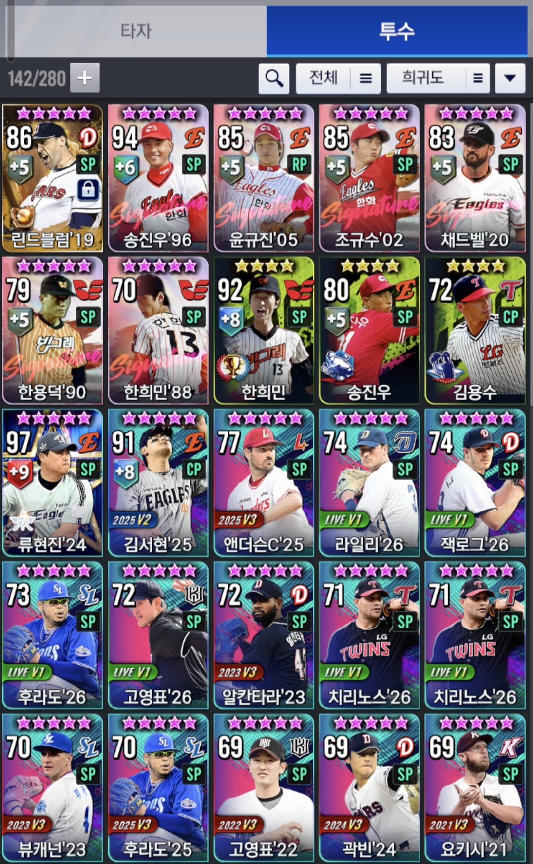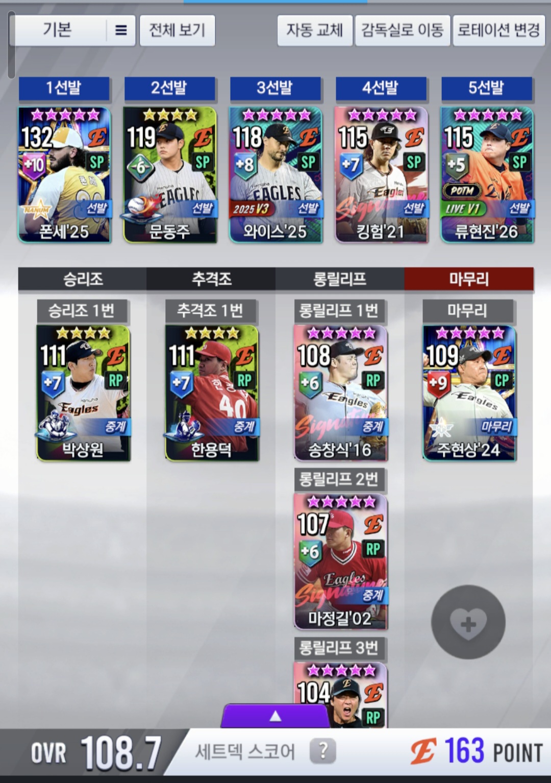 - 3. 구대성 은 마무리 종결로 알거있는데 상위유저만 마무리러 골글 쓰는걸로 알고있습니다.. 뭘뽑아야할지 모르겠네요.