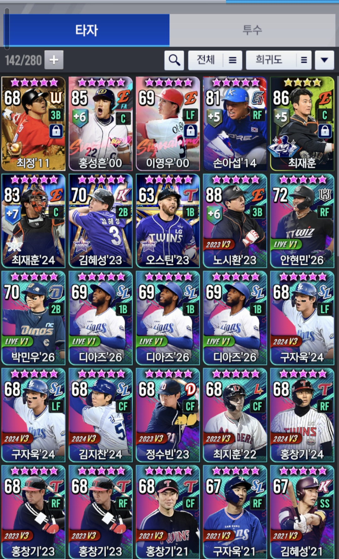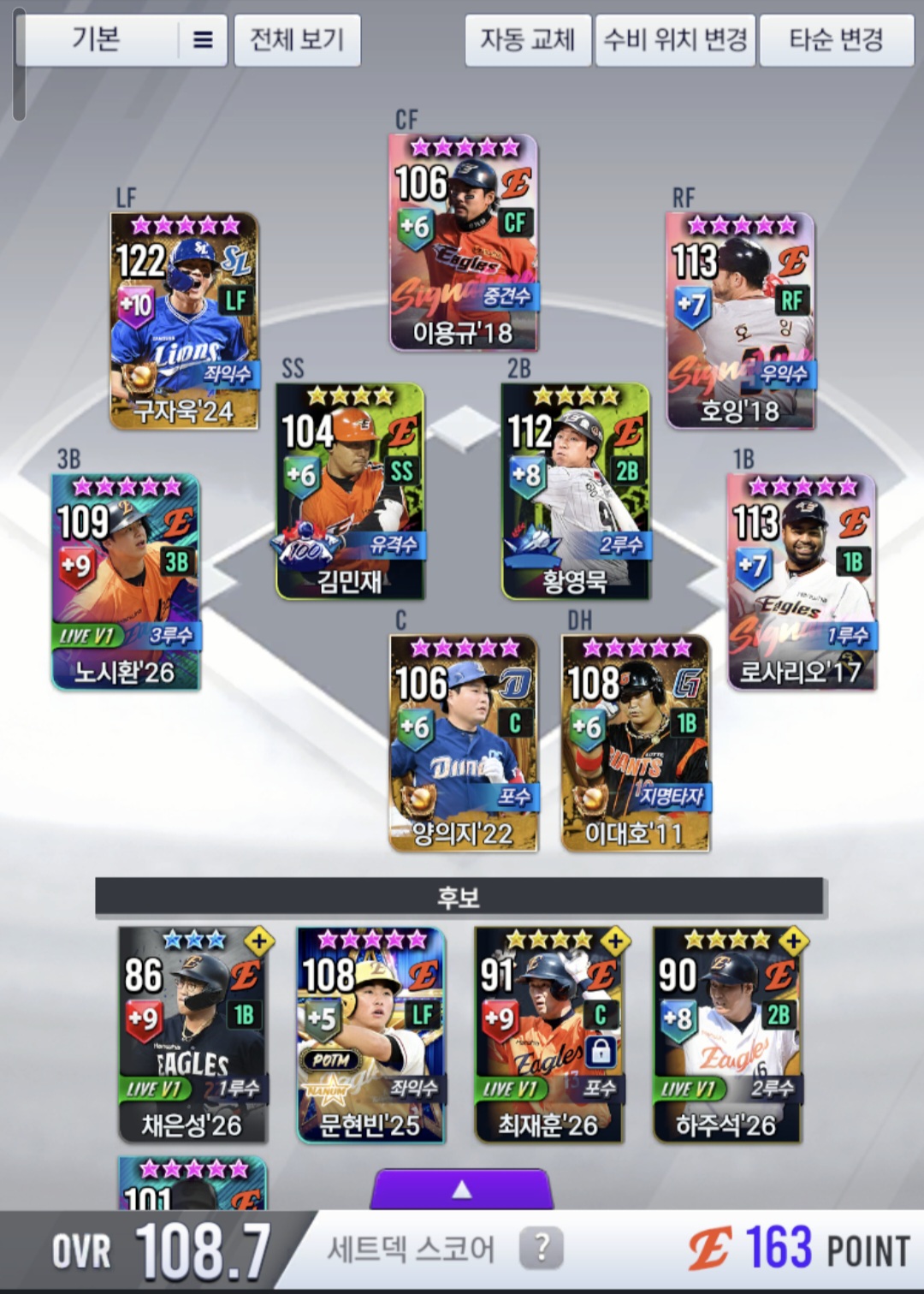 - 4. 시그 00이영우 종결로 알고있는데 골글 구자욱을 사용하고있습니다. 어떻게 대타로라도 키울지 고민입니다.
