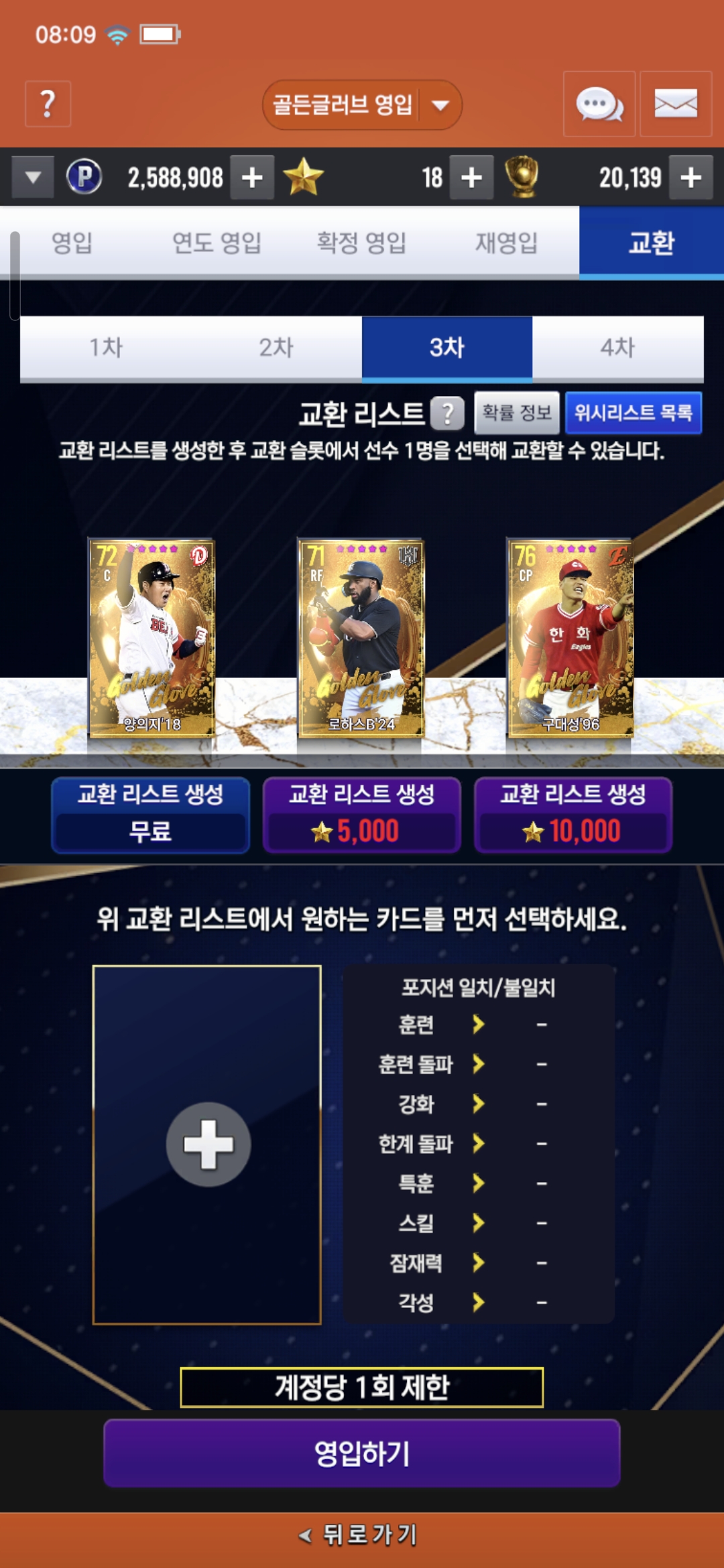 안녕하세요 선배님들.. 1년 좀 넘은 한화 무과금 계정 문의드립니다. 현재 1차 2차교환은 한상태입니다.