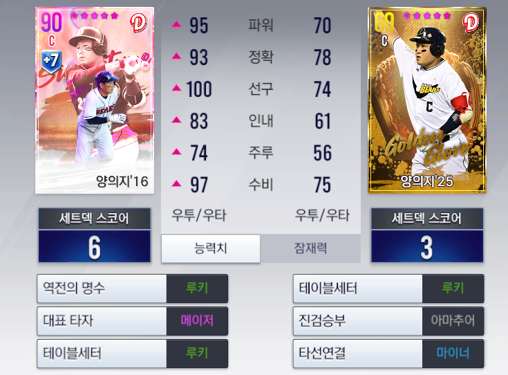 이미 시그 16 양의지를 키우고 있는데, 골글 25 양의지를 키워서 쓰는 게 맞을지 여쭙습니다!