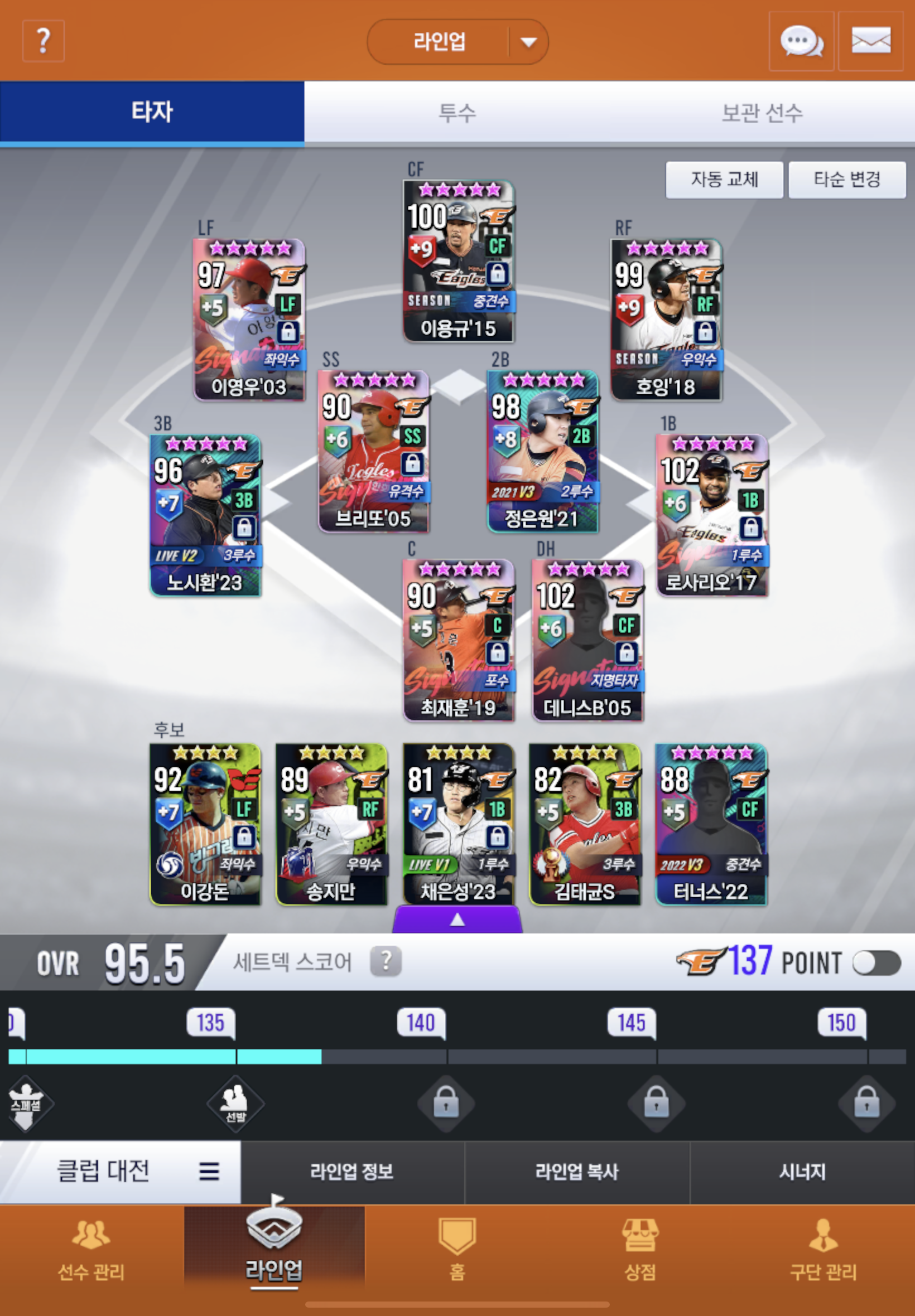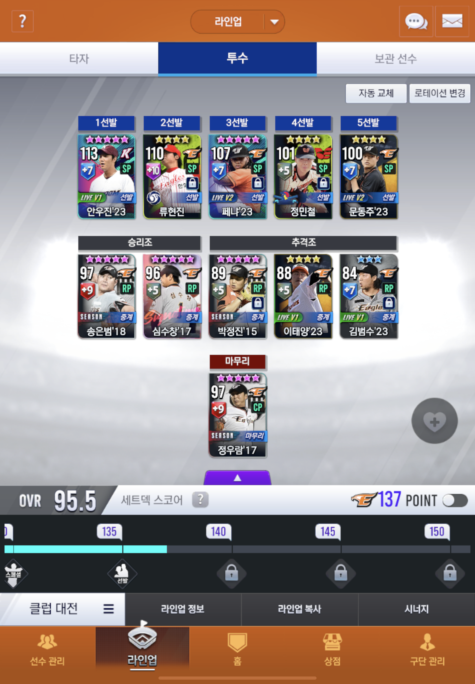 페넌 시그는 정근우, 송진우 중에 고민이고, 선호구단은 11박정진, 08김태균중에 고민입니다. 임팩트는 이태양 생각중입니다. . . 시처는 잘 모르겠네요. . . 한잘알들 부탁드립니다!!