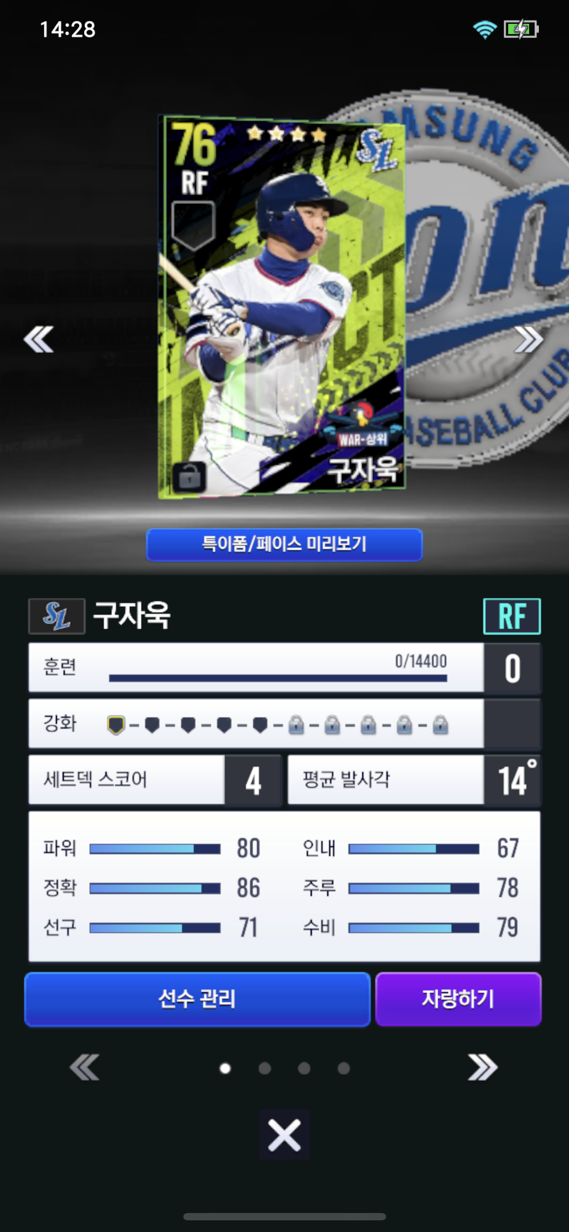 그리고 구자욱을 쓴다면 어느 시즌을 써야 하는지도 알려주세요ㅠ