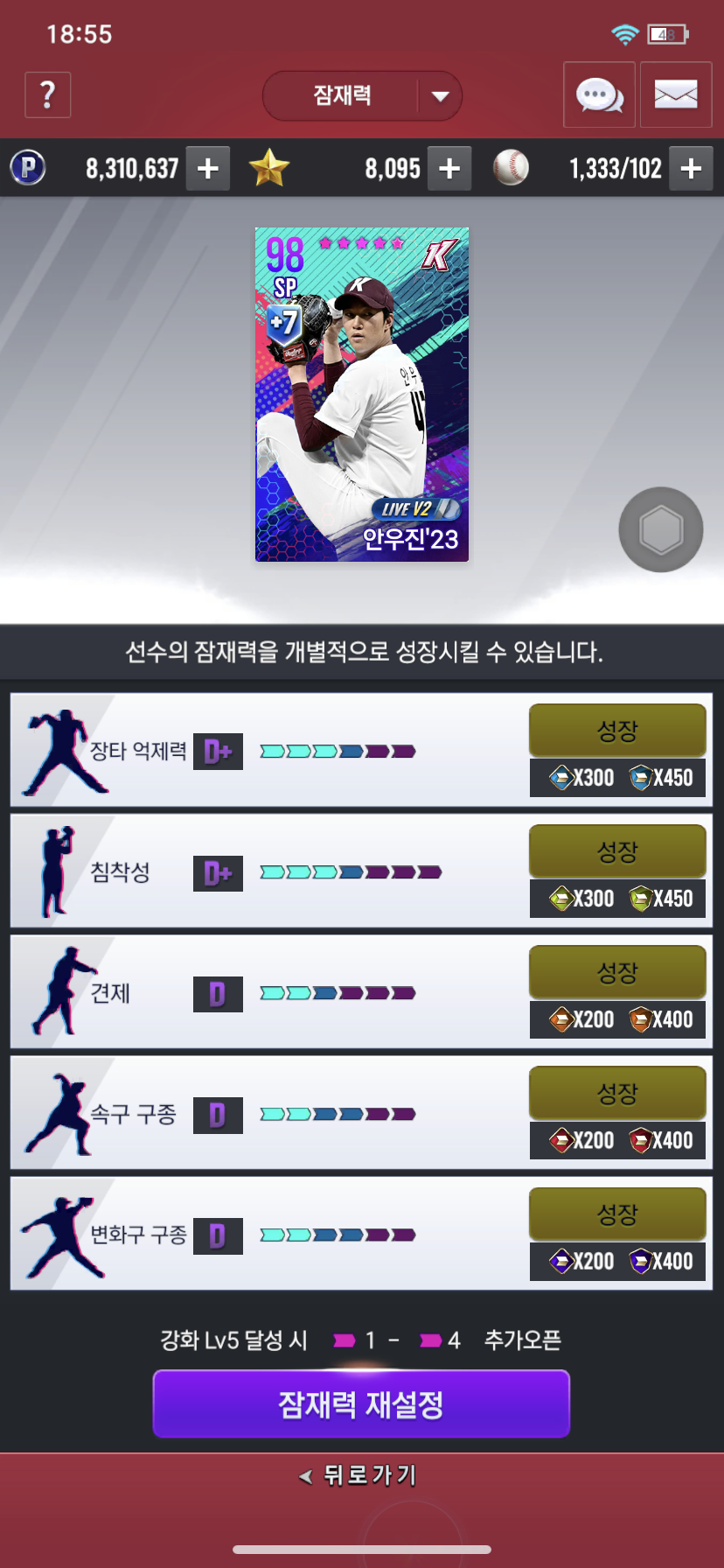 23v1 안우진이 없어서 일단 v2 쓰고있는데 잠재력 이정도면 잘뜬건가요? 아니면 갈아야 할까요?