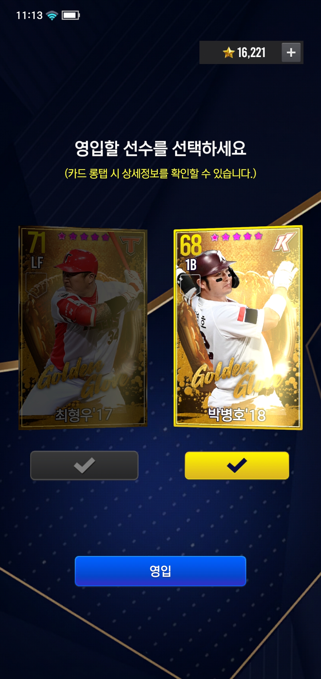 현재 한화덱하고 있고 첫 골글뽑했는데 이렇게 나왔습니다. 둘중에 뭐가 괜찮을지 의견부탁드려용