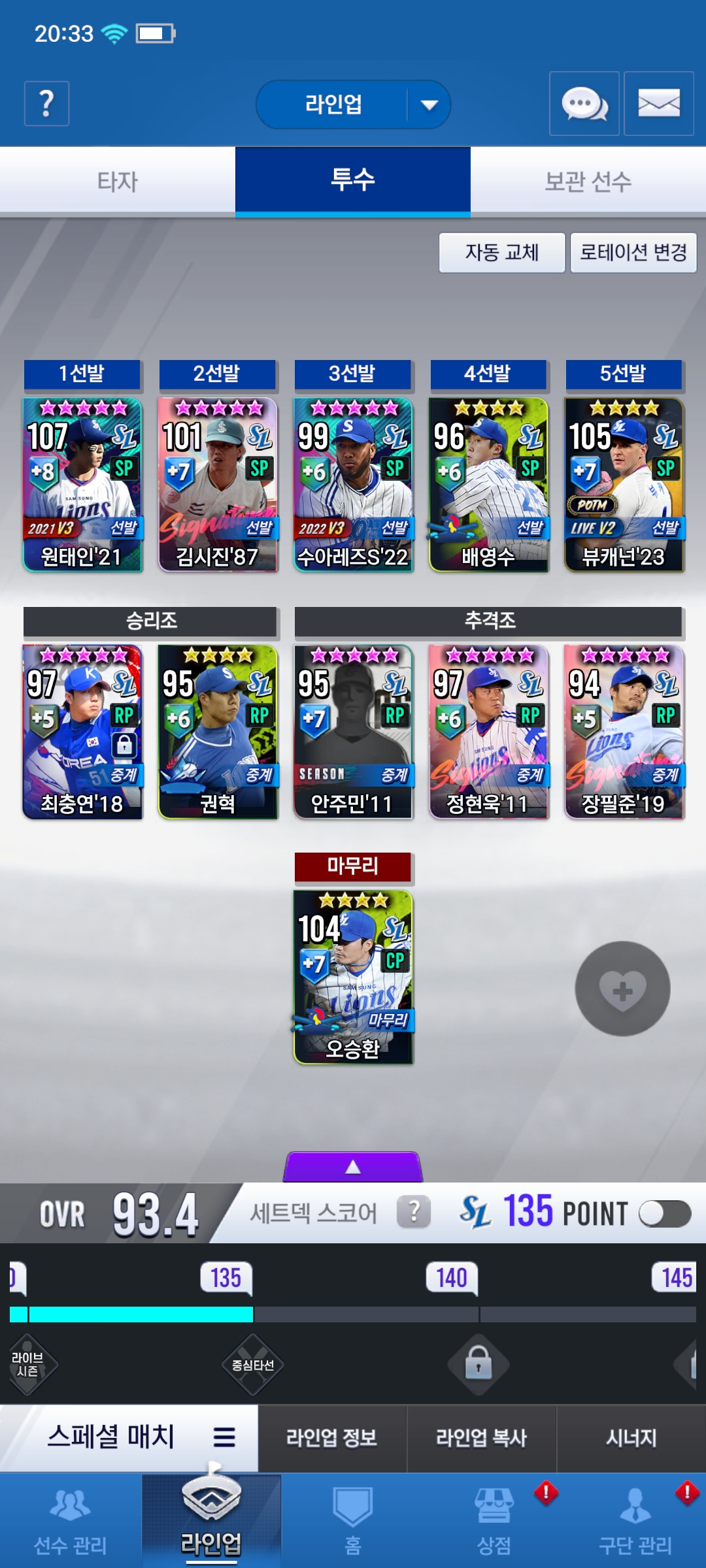 현재 가을 사나이 차우찬 불펜을 가지고 있습니다 차우찬과 다른 카드를 뭘 써야 할까요
