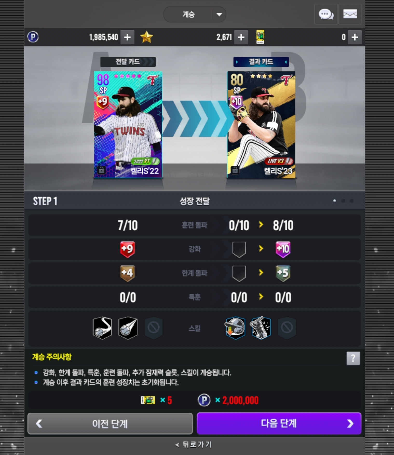 지금 제가 5성을 쓰고 있고 4성이 다음달까지 POTM 예상 선수라 쓰고 싶긴한데 혹시 이거 계승하면 손해일까요?