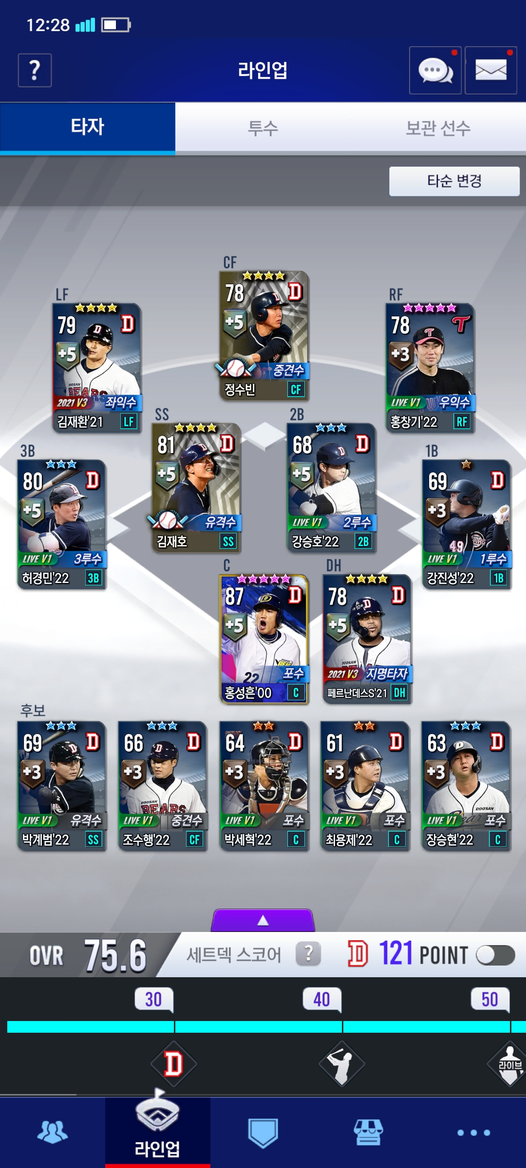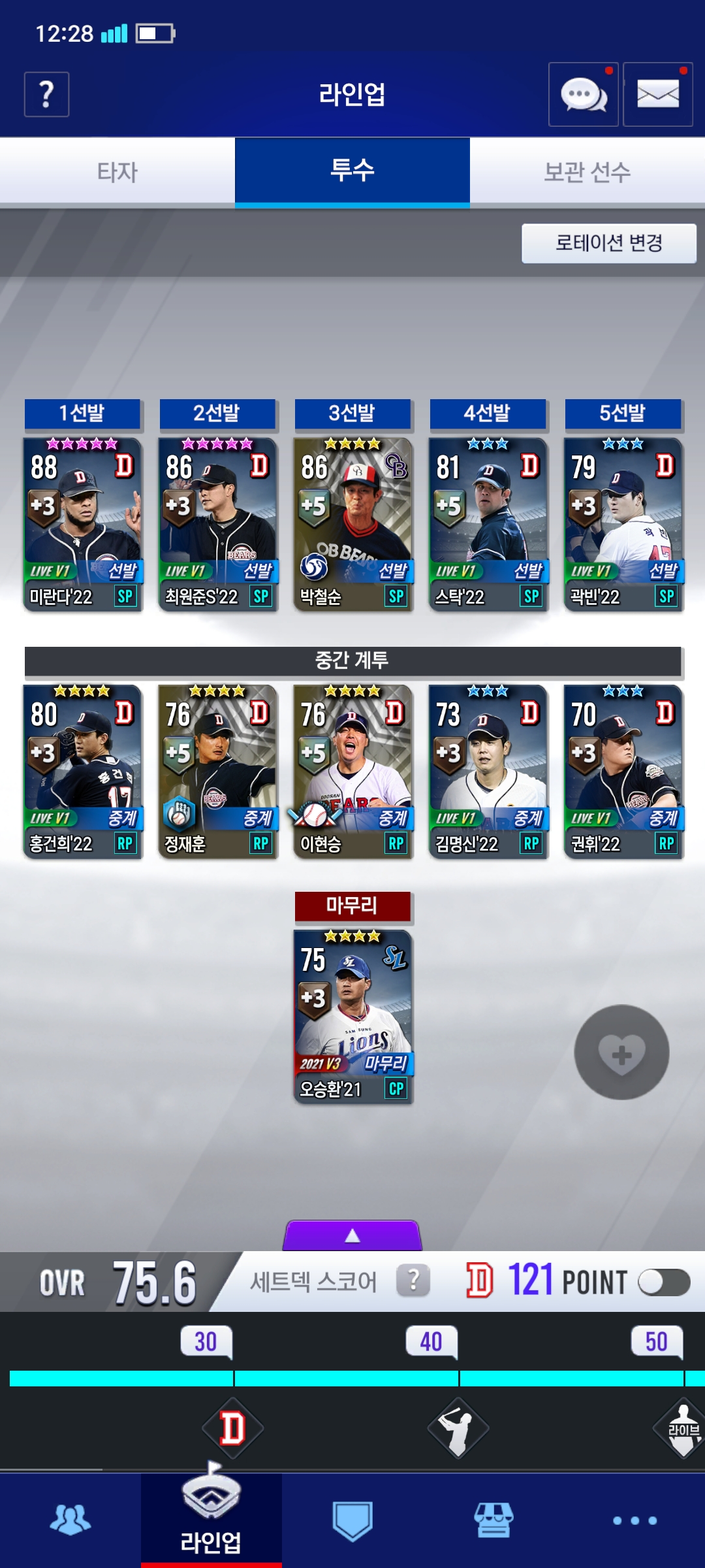 육성은 아직 훈련 및 강화만 진행중이고 훈련은 2명 제외 완료상태이고 강화는 전원 5강화를 목표로 진행중입니다.
