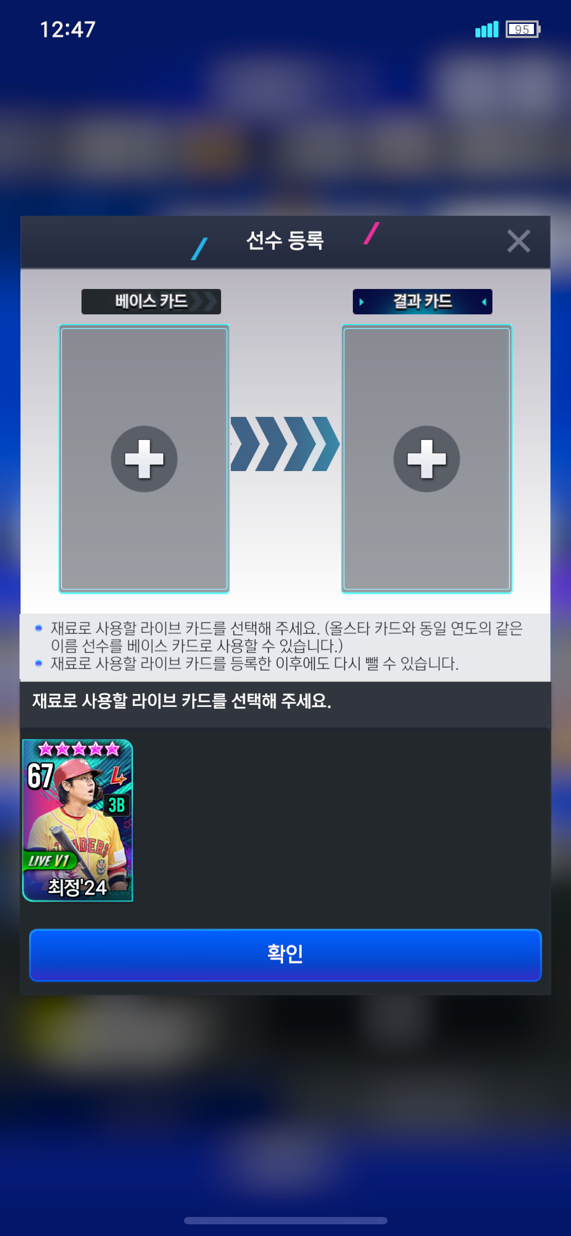 김택연 라이브 카드 종류가 하나라 이거구나 하고 만드려 하는데 베이스 카드 등록에 안 뜨네요..? 왜 그럴까요