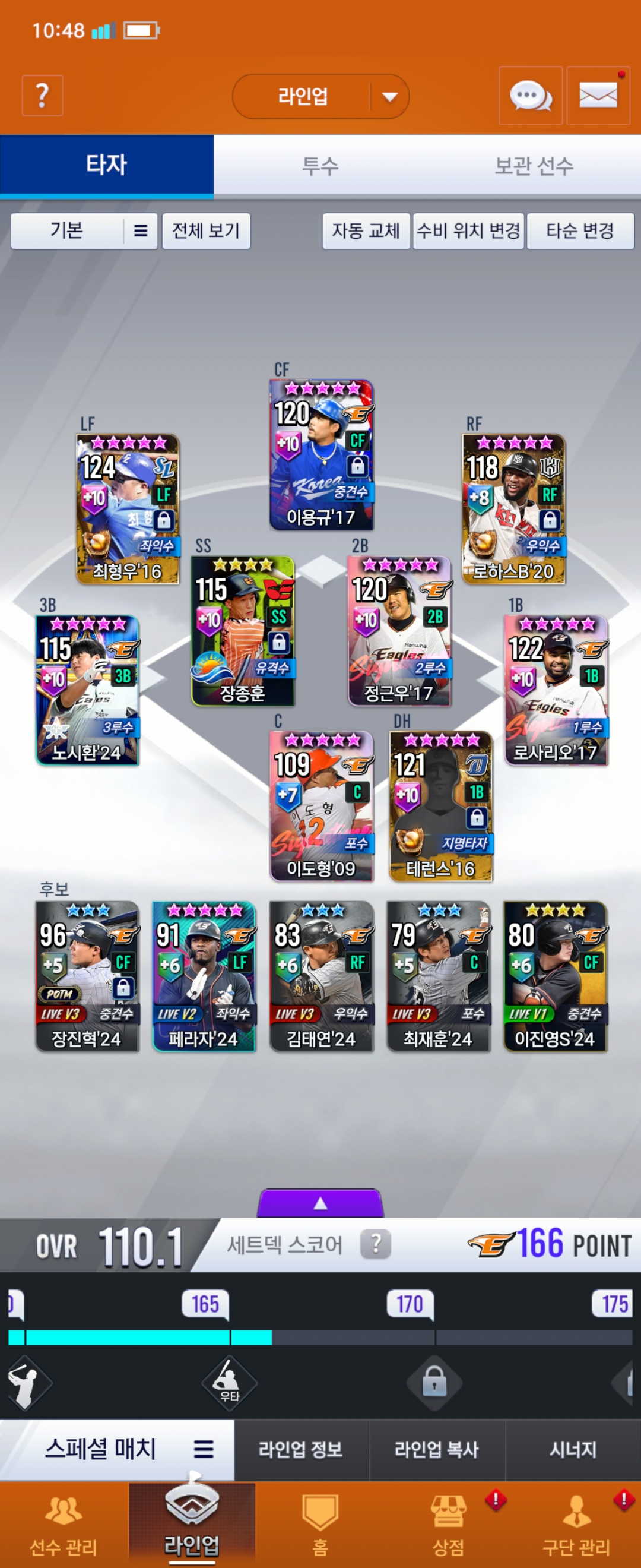 현재 가지고 있는 선수 내에서 지금보다 좋은 라인업을 구성하고 싶습니다.