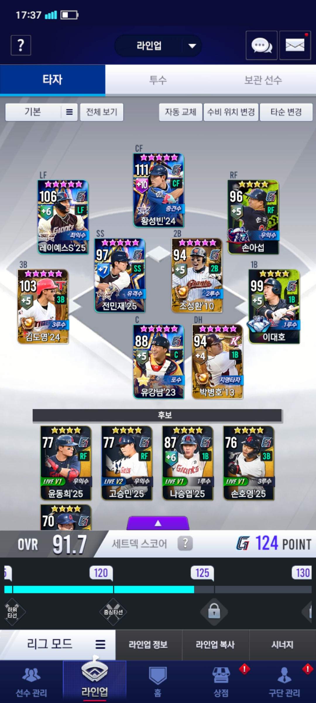 타자는 또 막막한데 제가 시그10년도 조성환이랑 시그24년도 레이예스가 있는데 그거 써야하나요?