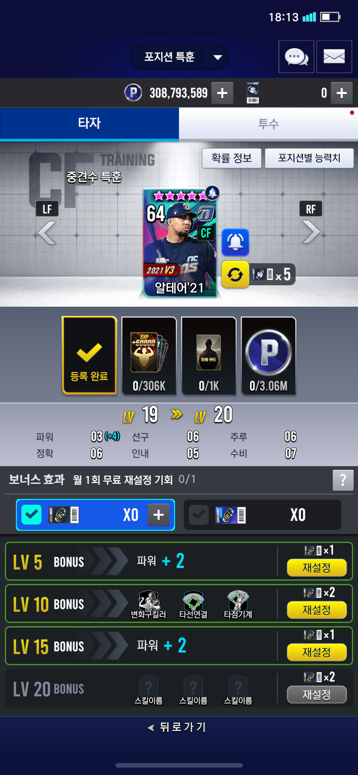 중견수 19→20렙 포특인데 알테어 등록이 안됩니다
