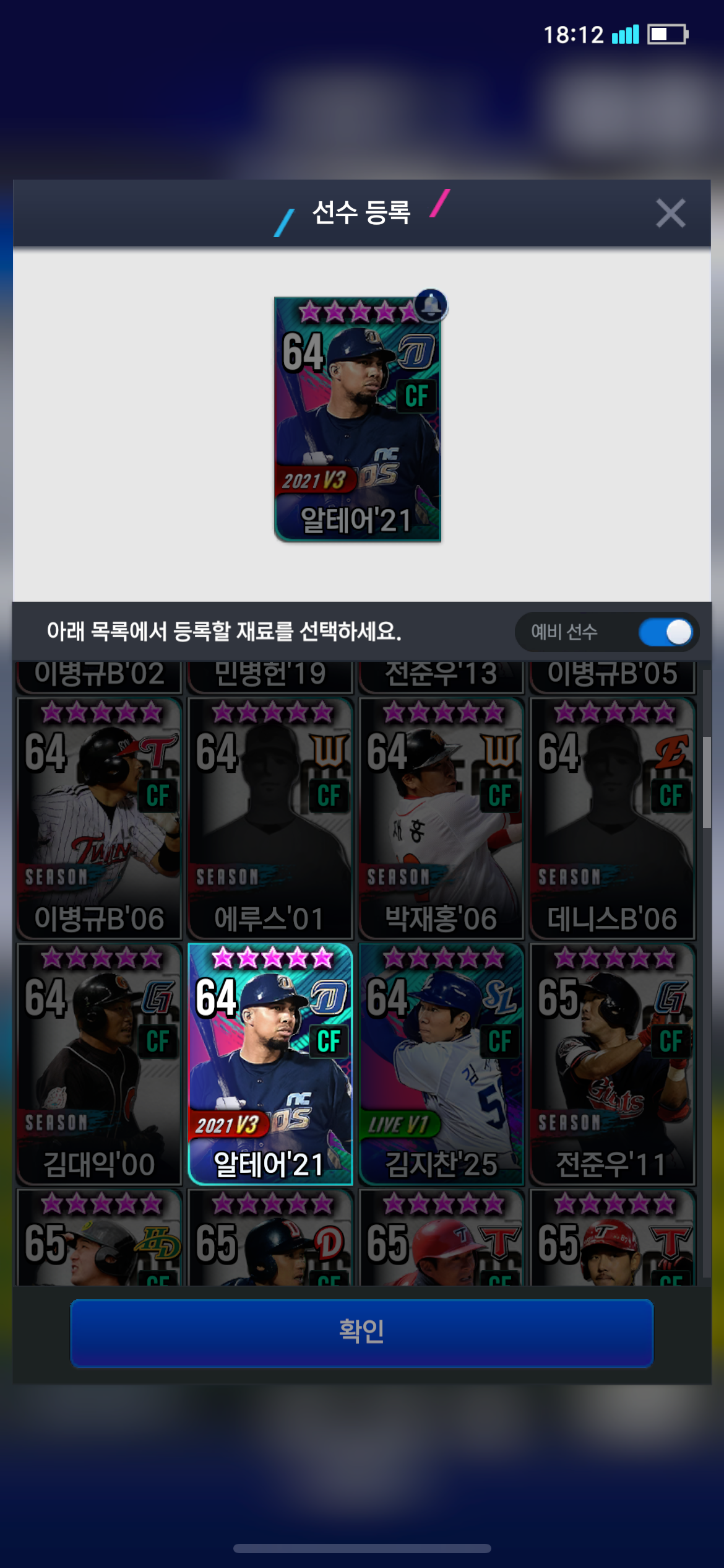 예비선수에 떠있고 눌러도 반응이 없어요