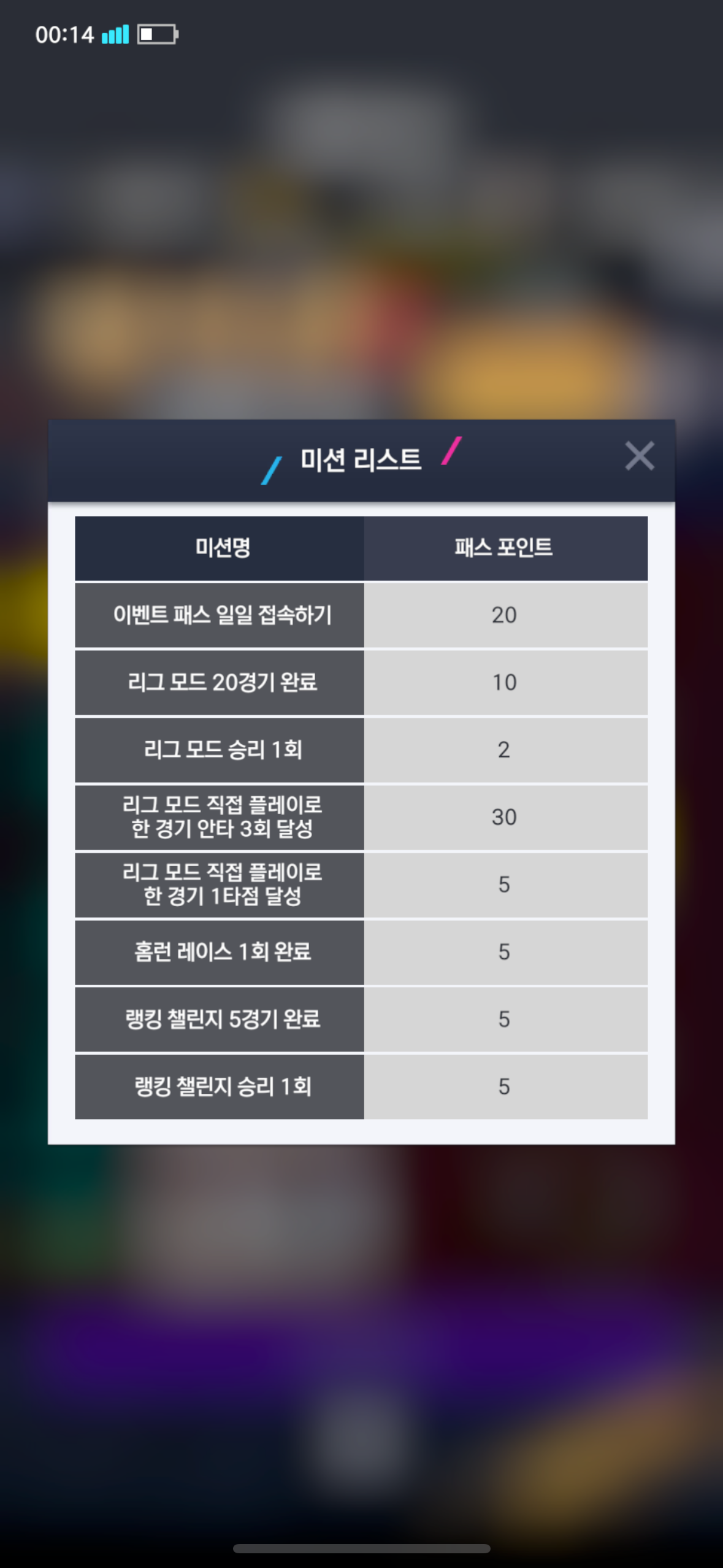 홈런 레이스를 1회 진행했을 때 주어져야하는 5포인트가 적용되지 않습니다.