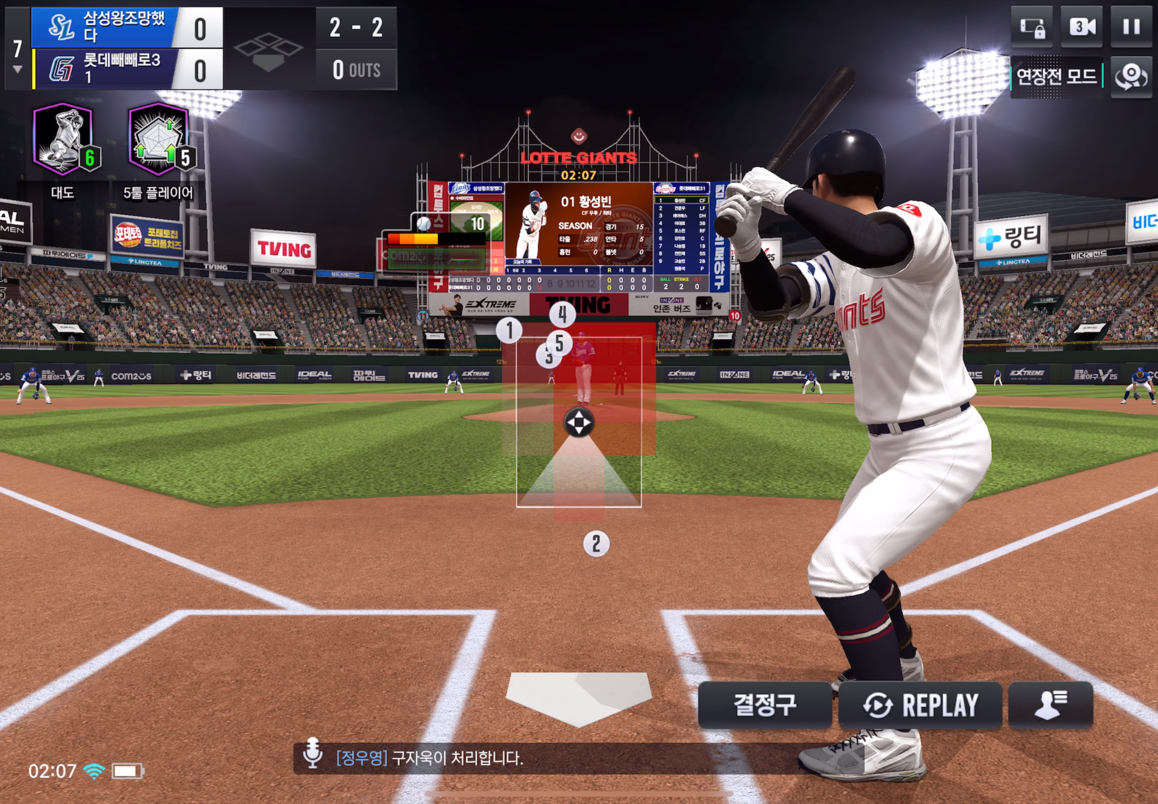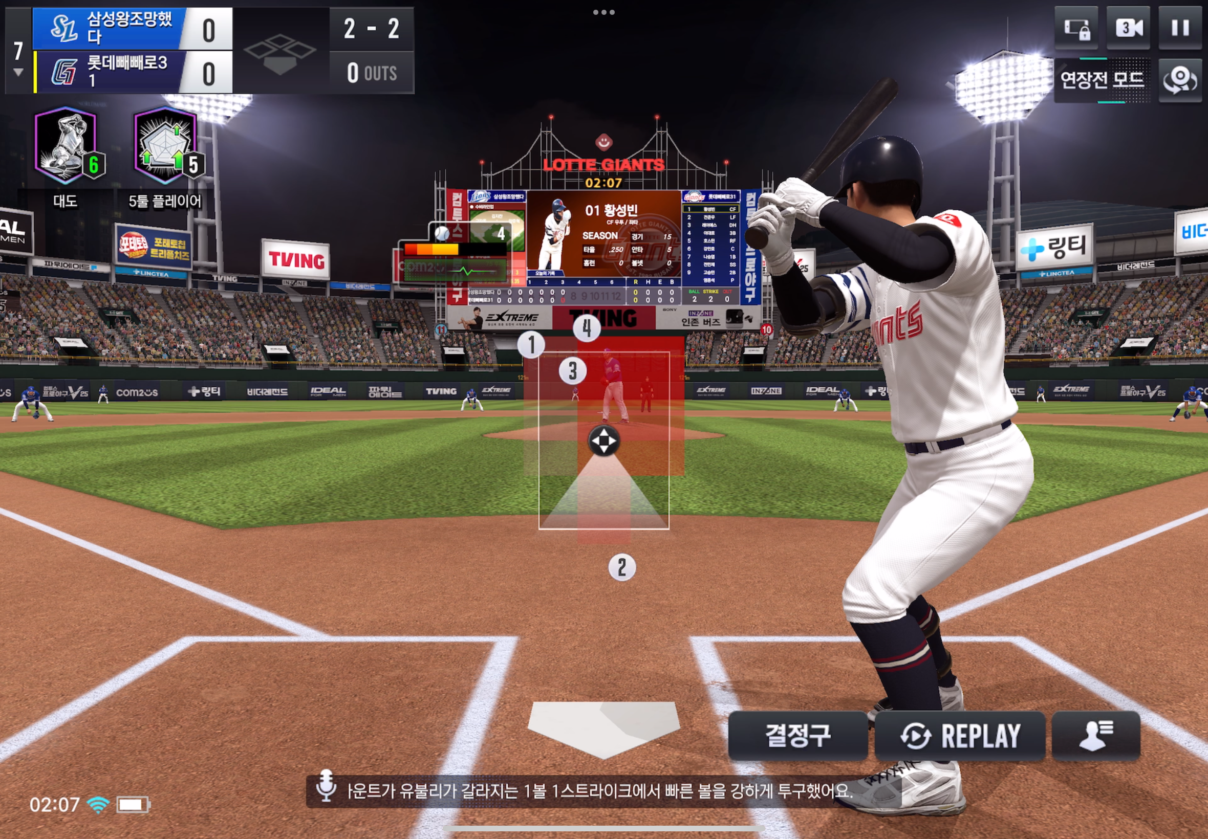 5구째를 상대방이 타격했고 아웃을 잡았는데 아웃카운트가 사라지고 다시 동일한 타자의 타석으로 리셋됐습니다