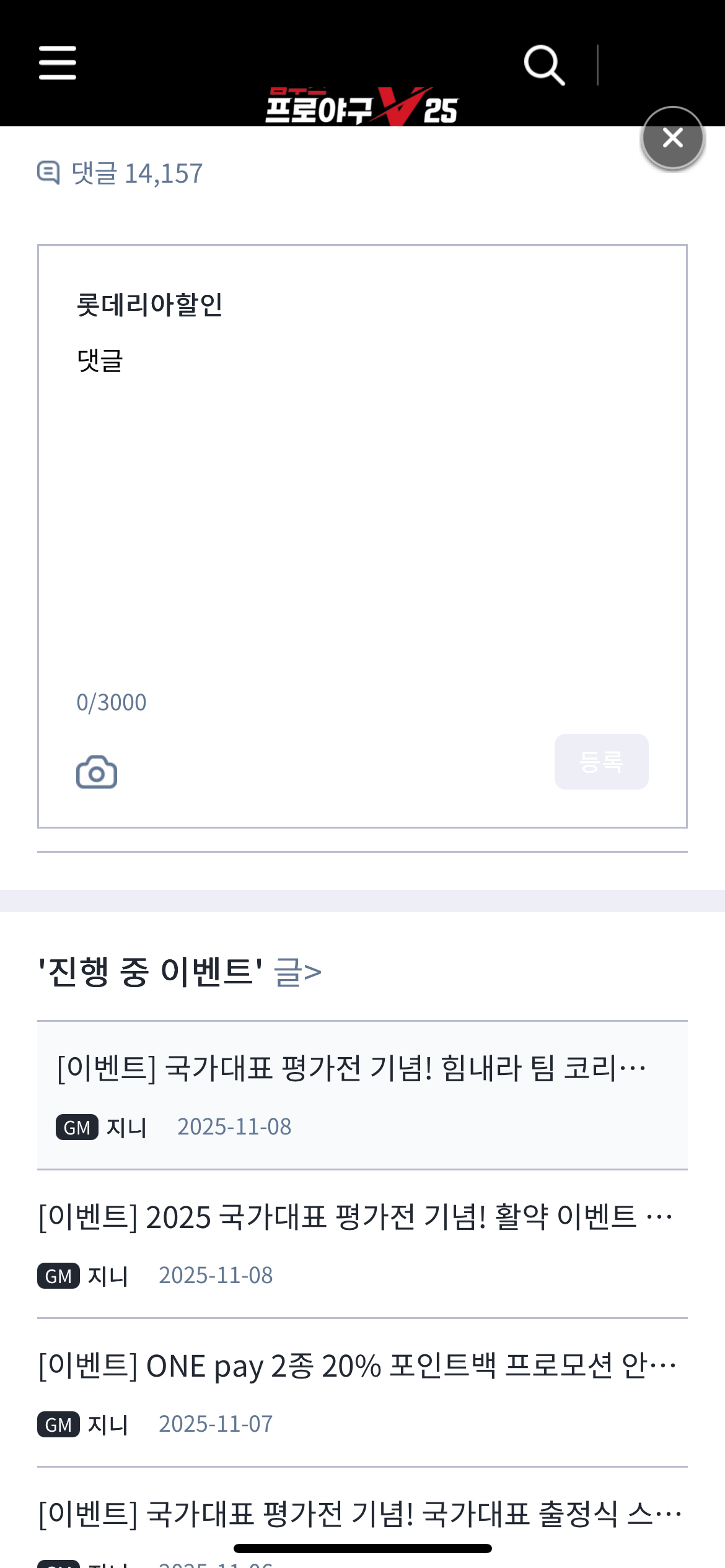 버그 제보 웹페이지 이벤트 댓글참여 오류 롯데리아할인 2025-11-08 17:31 48 0 공유 공유 URL 복사 페이스북 왓츠앱 카카오톡 라인 레딧 닫기 공유 이거 글을 써도 등록 자체 활성화가 안됨사진을 올리려고해도 반응없음 0 0 댓글 0