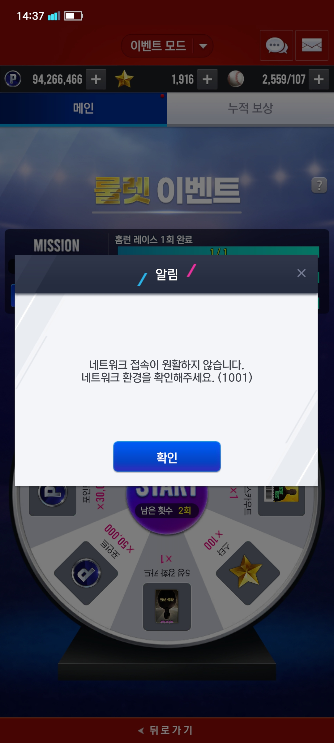 룰렛 이벤트 실행 시 해당 문구가 계속해서 나오는 무한루프 현상이 발생하였습니다.