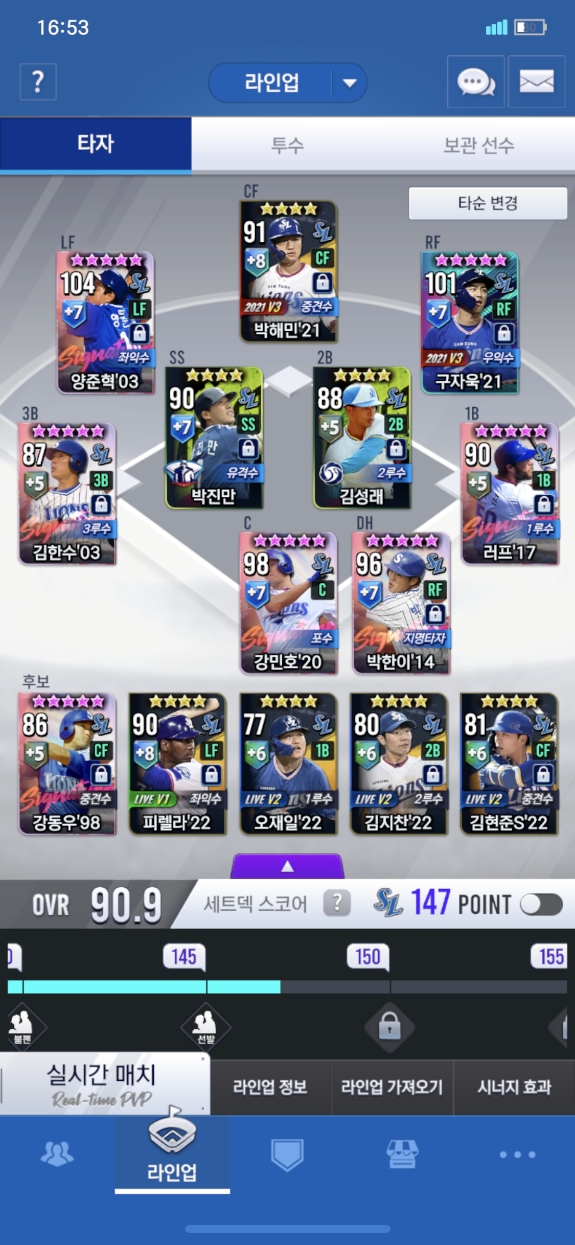 선수 교체시 박한이 구자욱을 교체하면 교체 저장까지 확인 누르고 해도 안 바뀝니다 적용이 안돼요